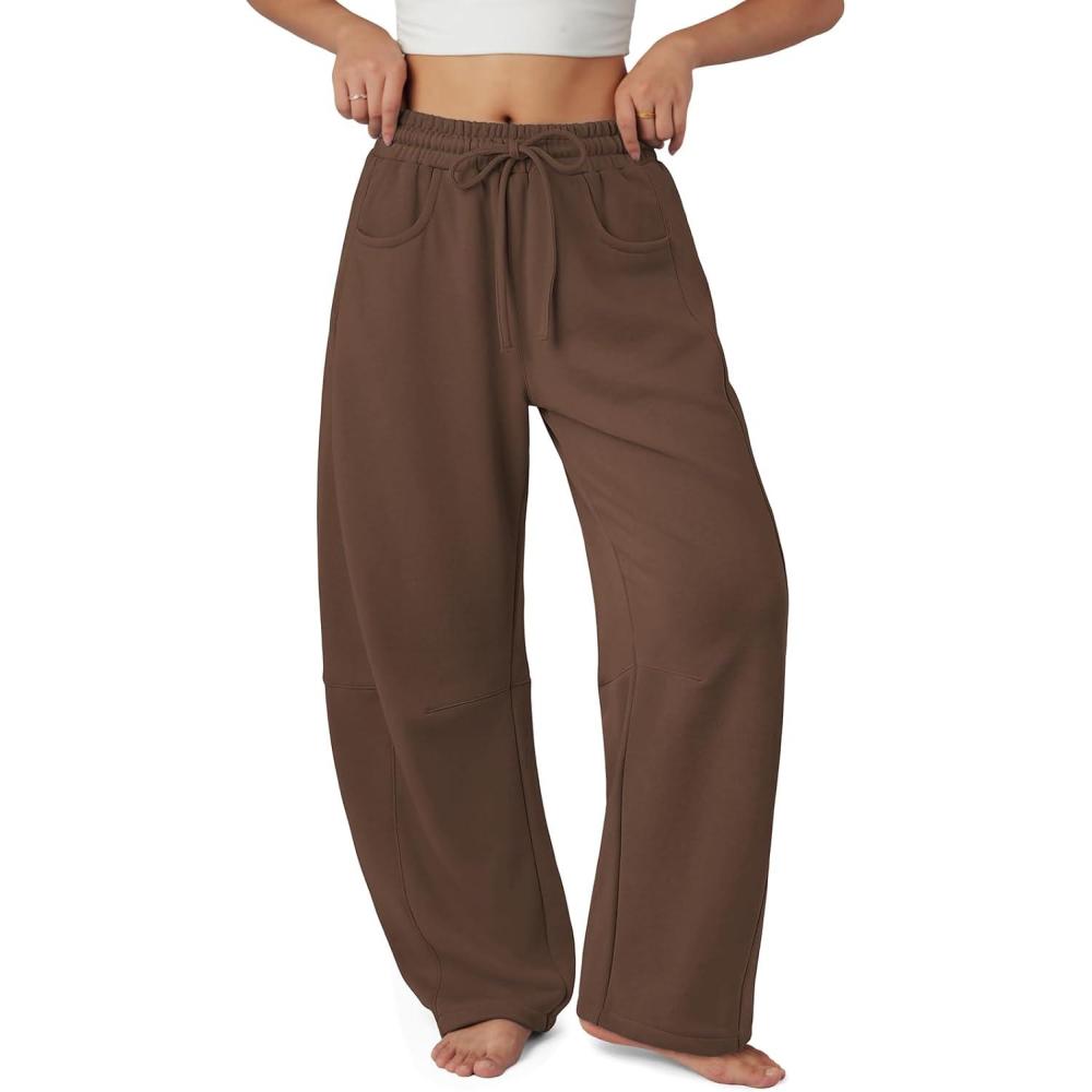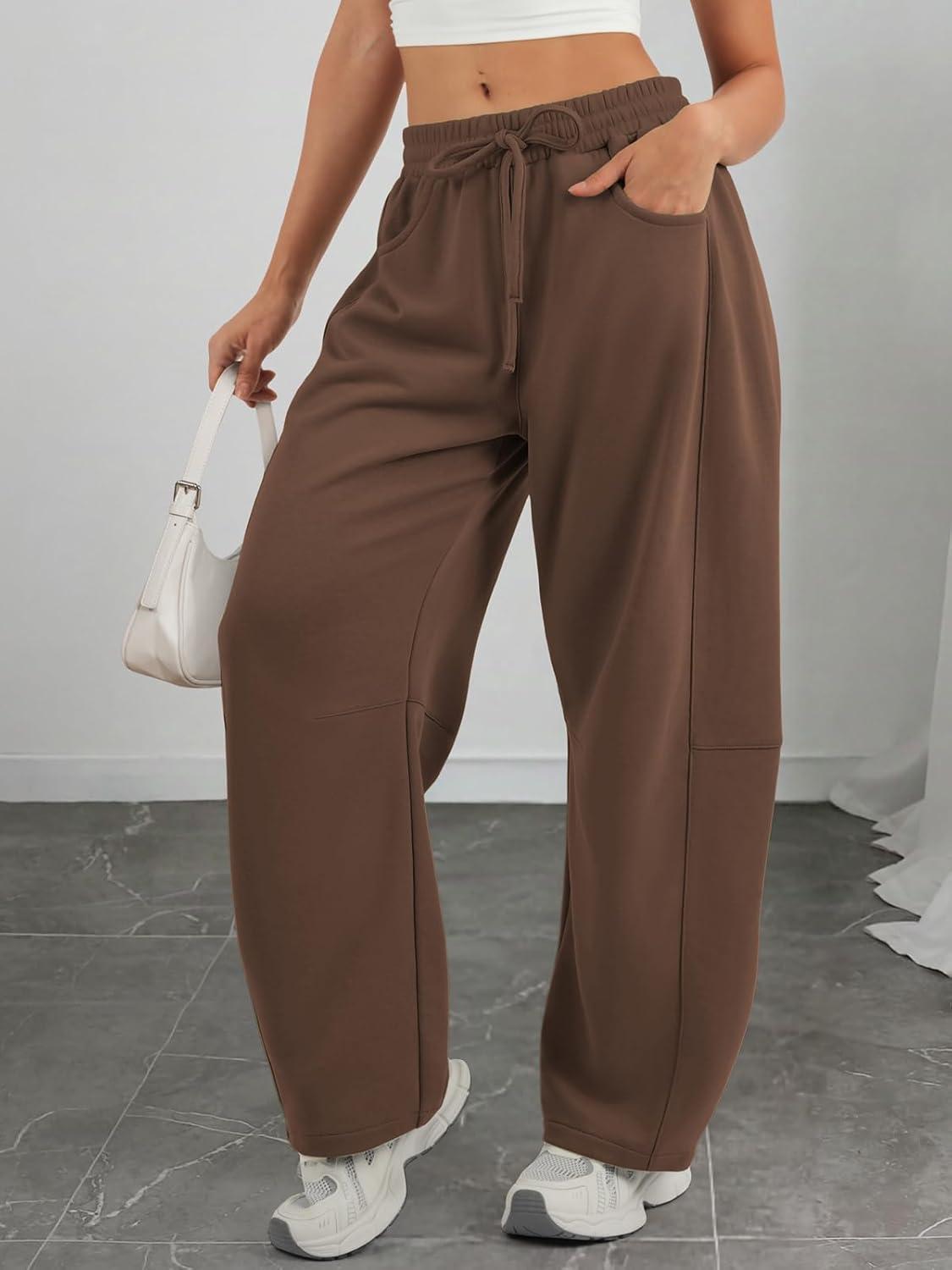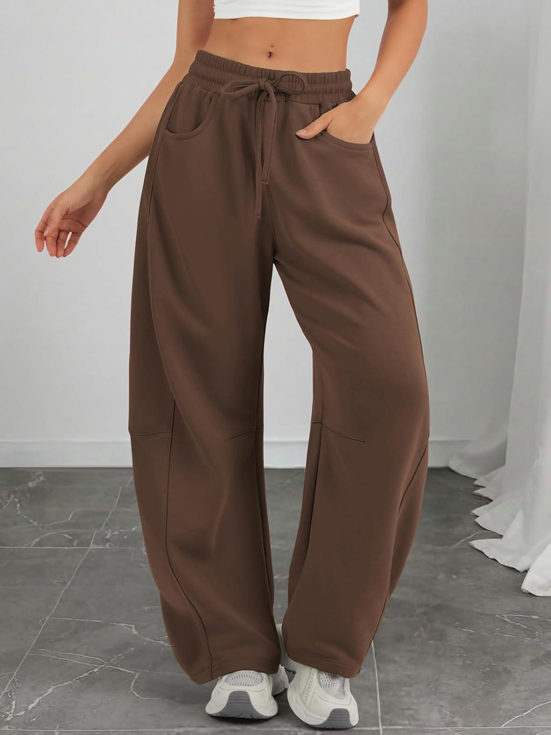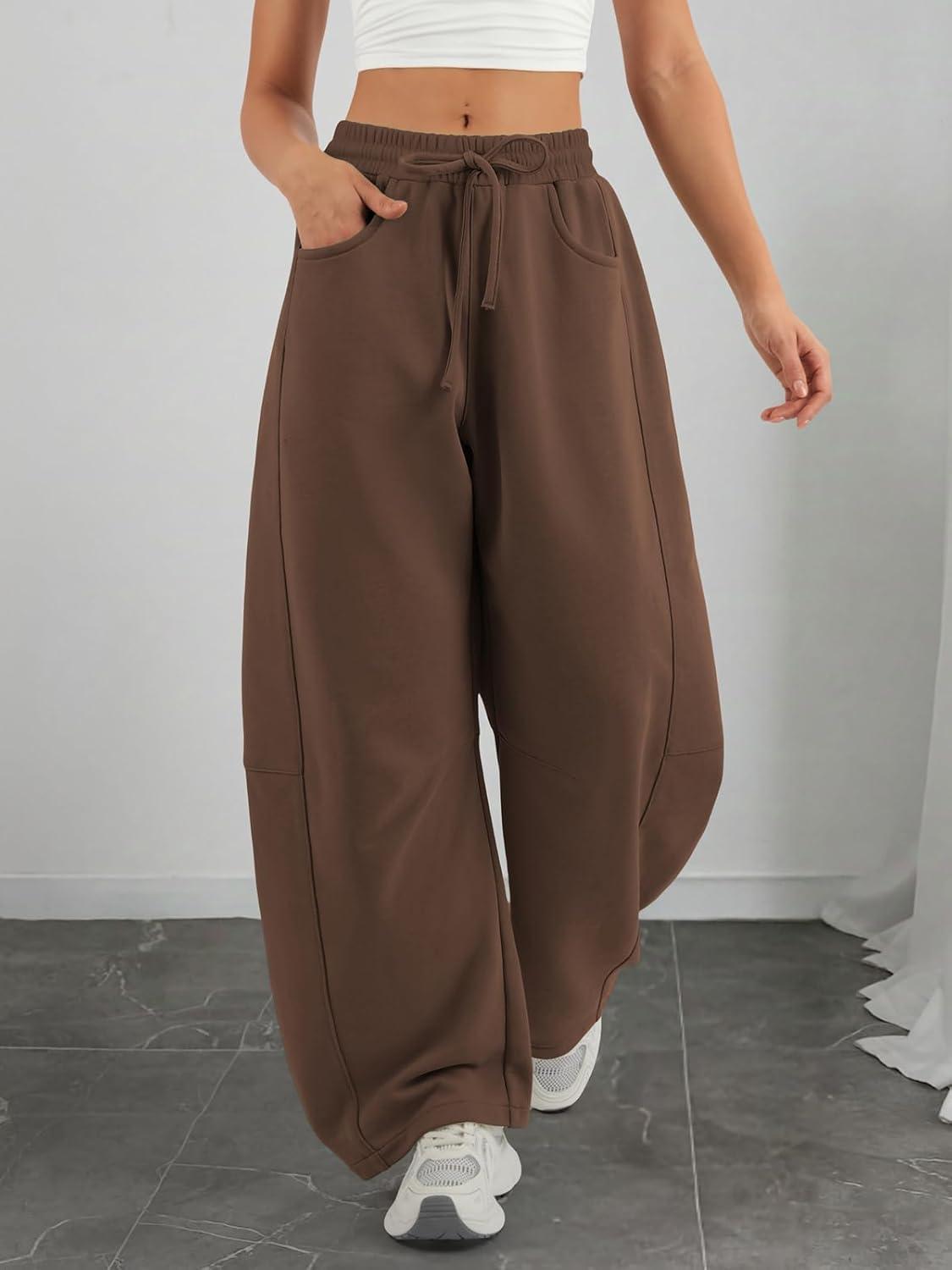 ATHMILE Barrel Sweatpants Women Fall Fashion Wide Leg Pants 2025 Baggy Lounge Comfy Flowy Sweat Pants with Pockets(Coffee)