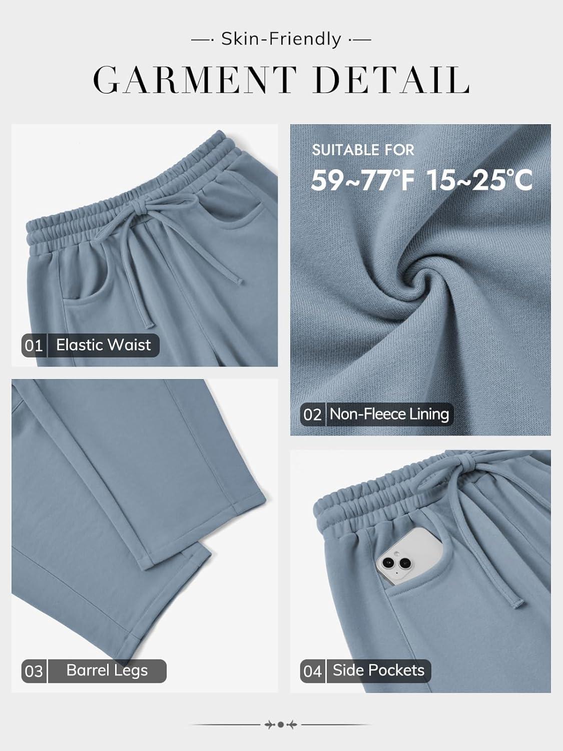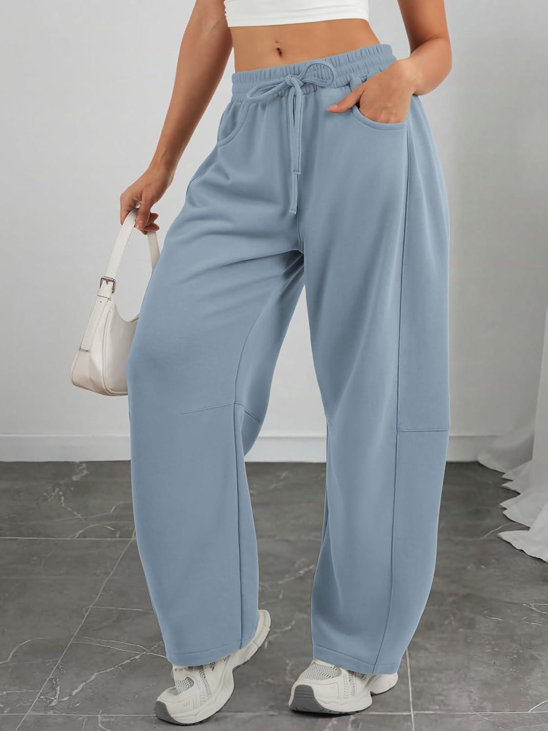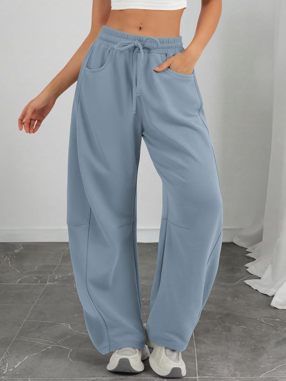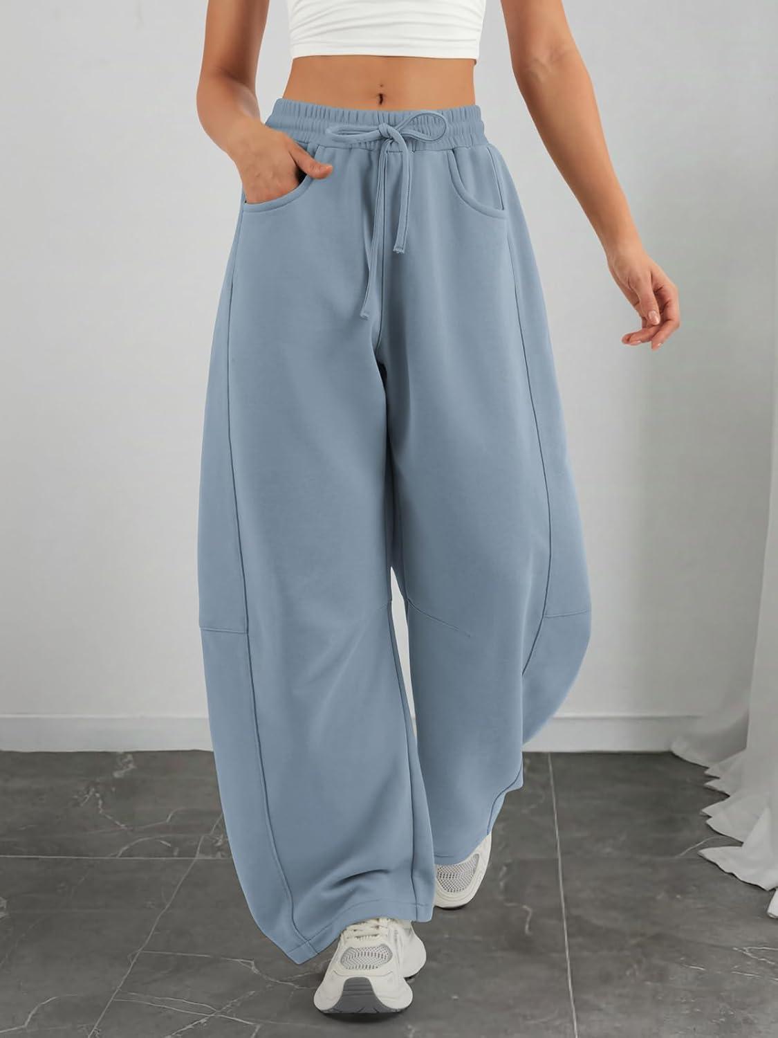 ATHMILE Barrel Sweatpants Women Fall Fashion Wide Leg Pants 2025 Baggy Lounge Comfy Flowy Sweat Pants with Pockets(Dusty Blue)