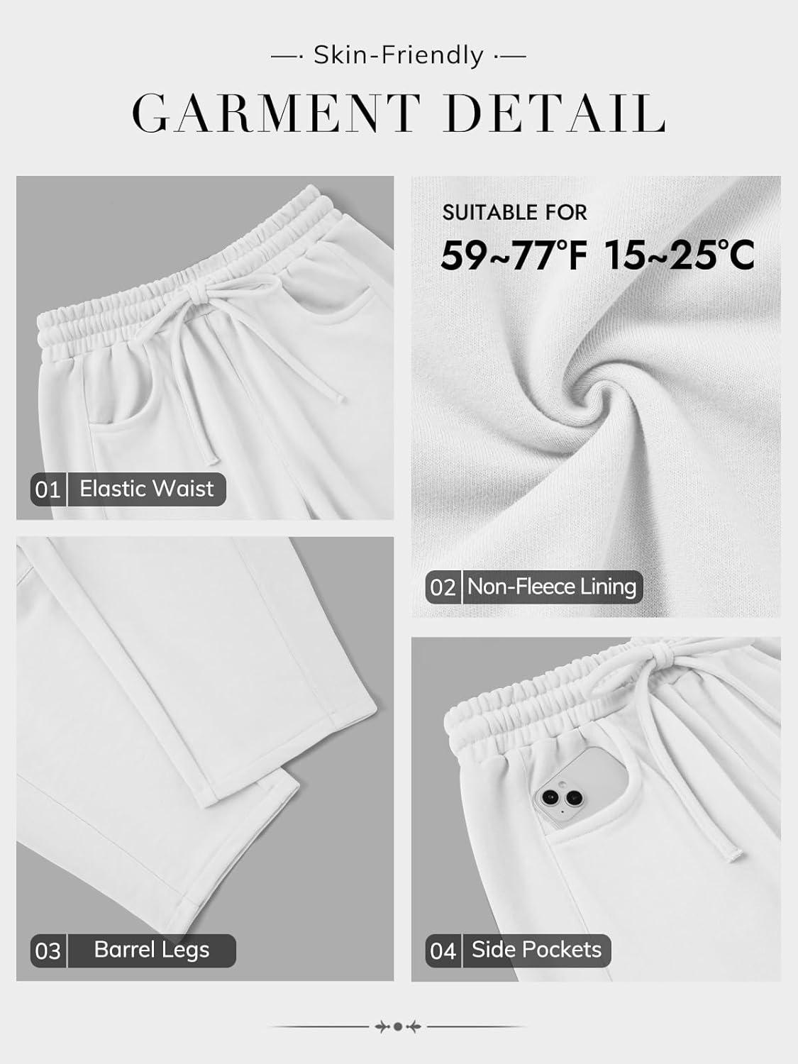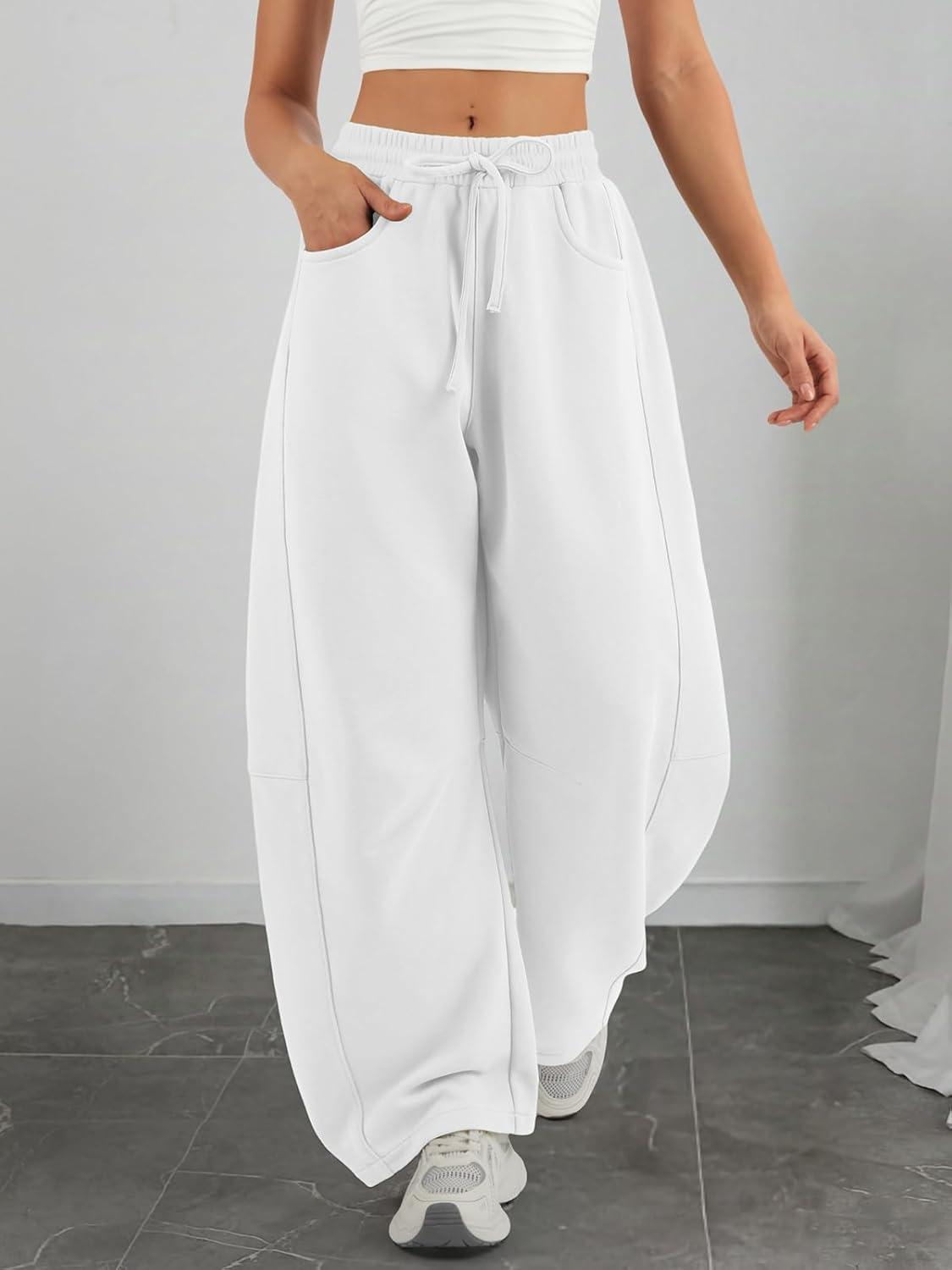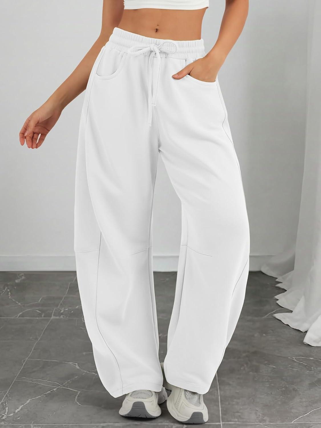 ATHMILE Barrel Sweatpants Women Fall Fashion Wide Leg Pants 2025 Baggy Lounge Comfy Flowy Sweat Pants with Pockets(White)