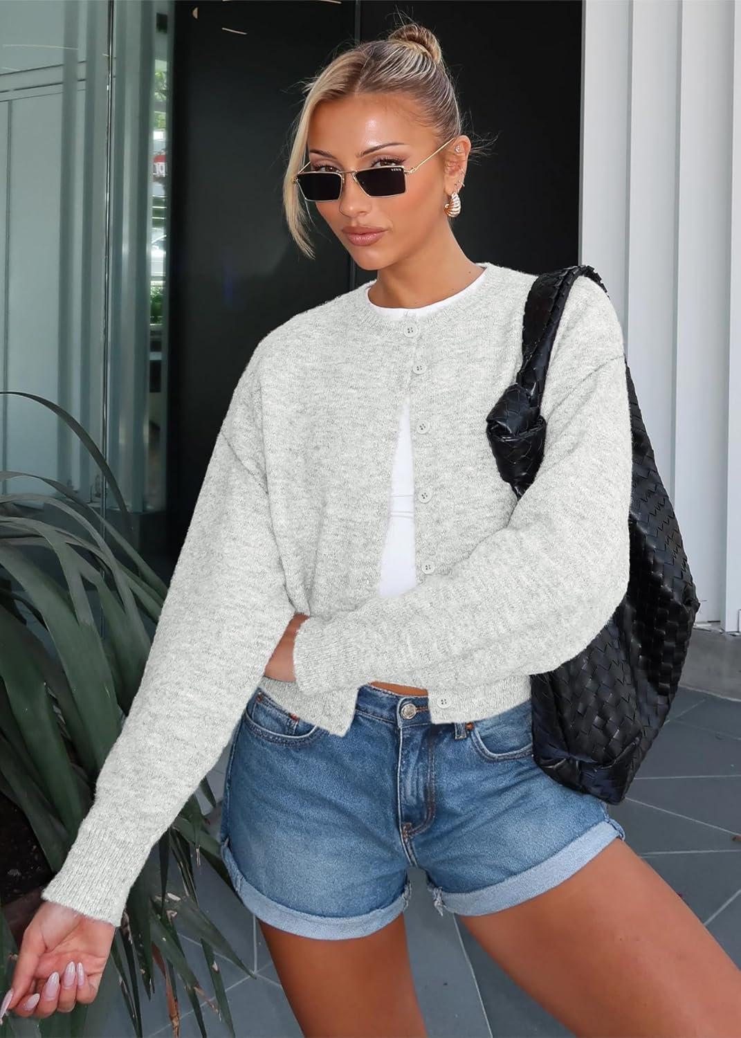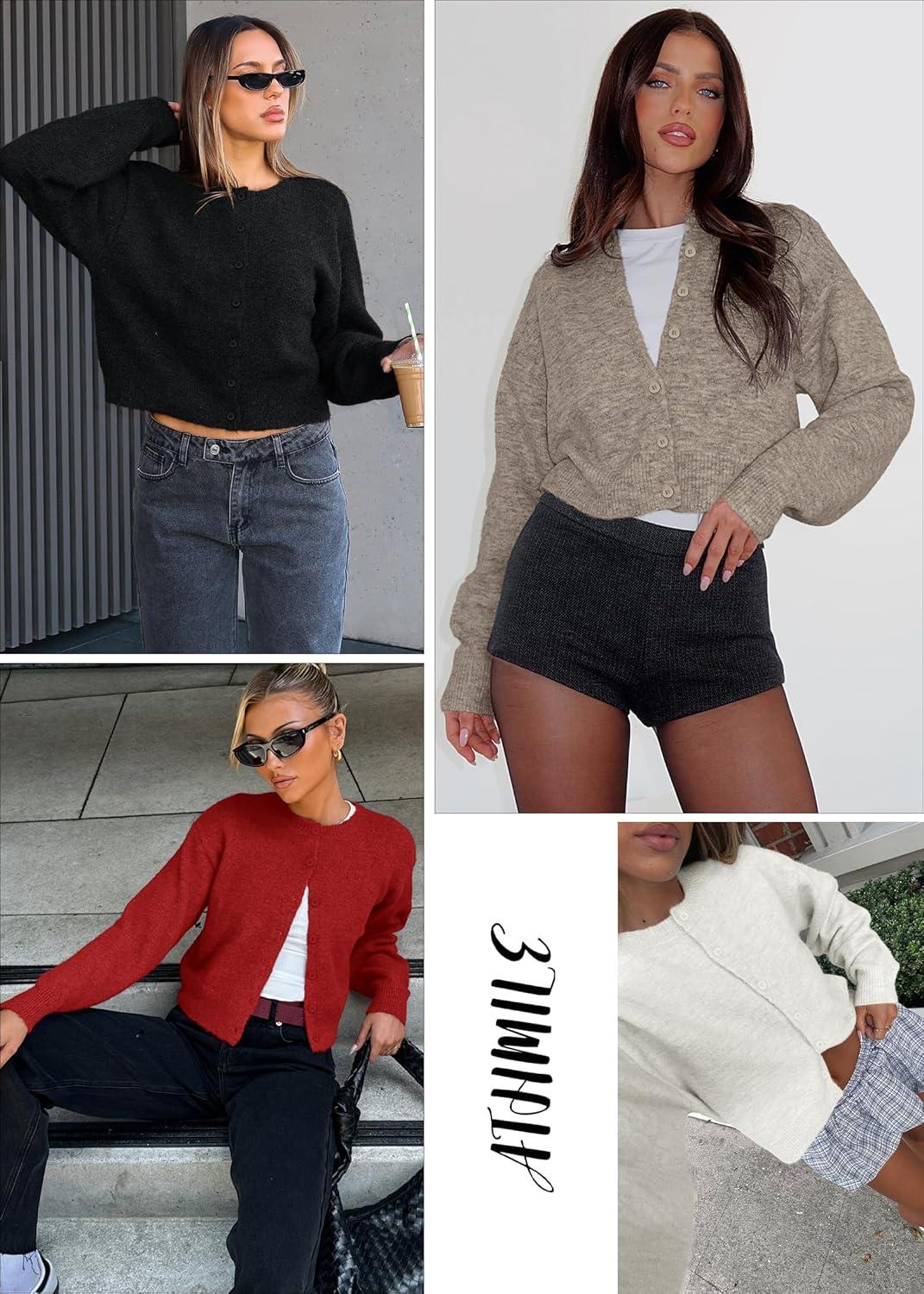 ATHMILE Cropped Cardigan Sweaters for Women Lightweight Crop Knit Y2k Fall Outfits Fashion Clothes 2025(Grey)