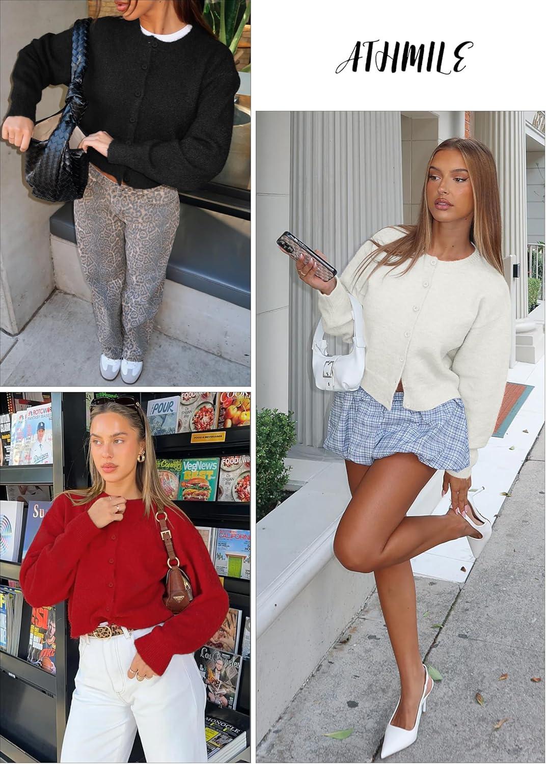 ATHMILE Cropped Cardigan Sweaters for Women Lightweight Crop Knit Y2k Fall Outfits Fashion Clothes 2025(Red)