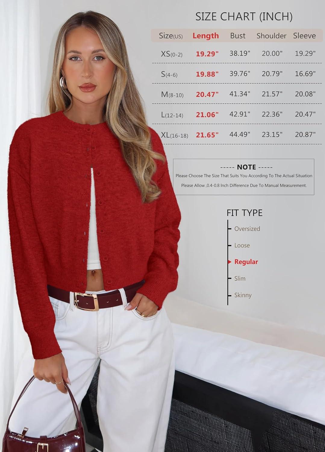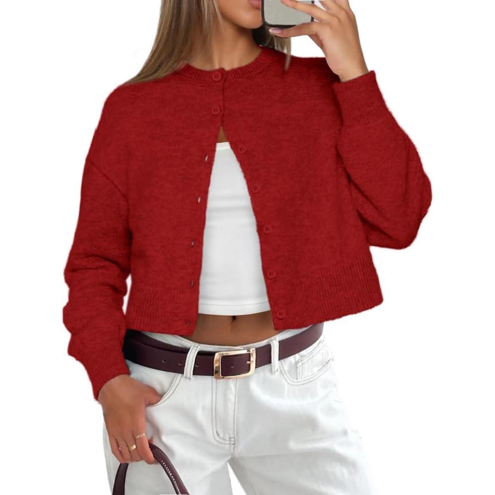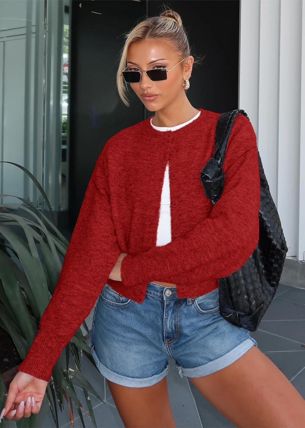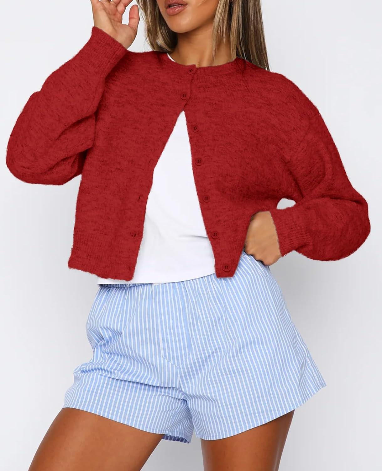 ATHMILE Cropped Cardigan Sweaters for Women Lightweight Crop Knit Y2k Fall Outfits Fashion Clothes 2025(Red)