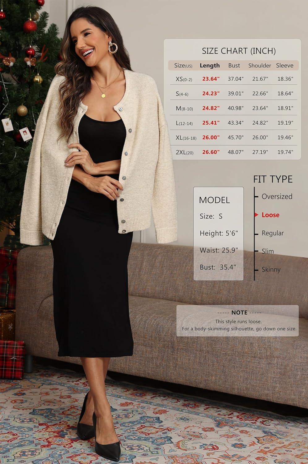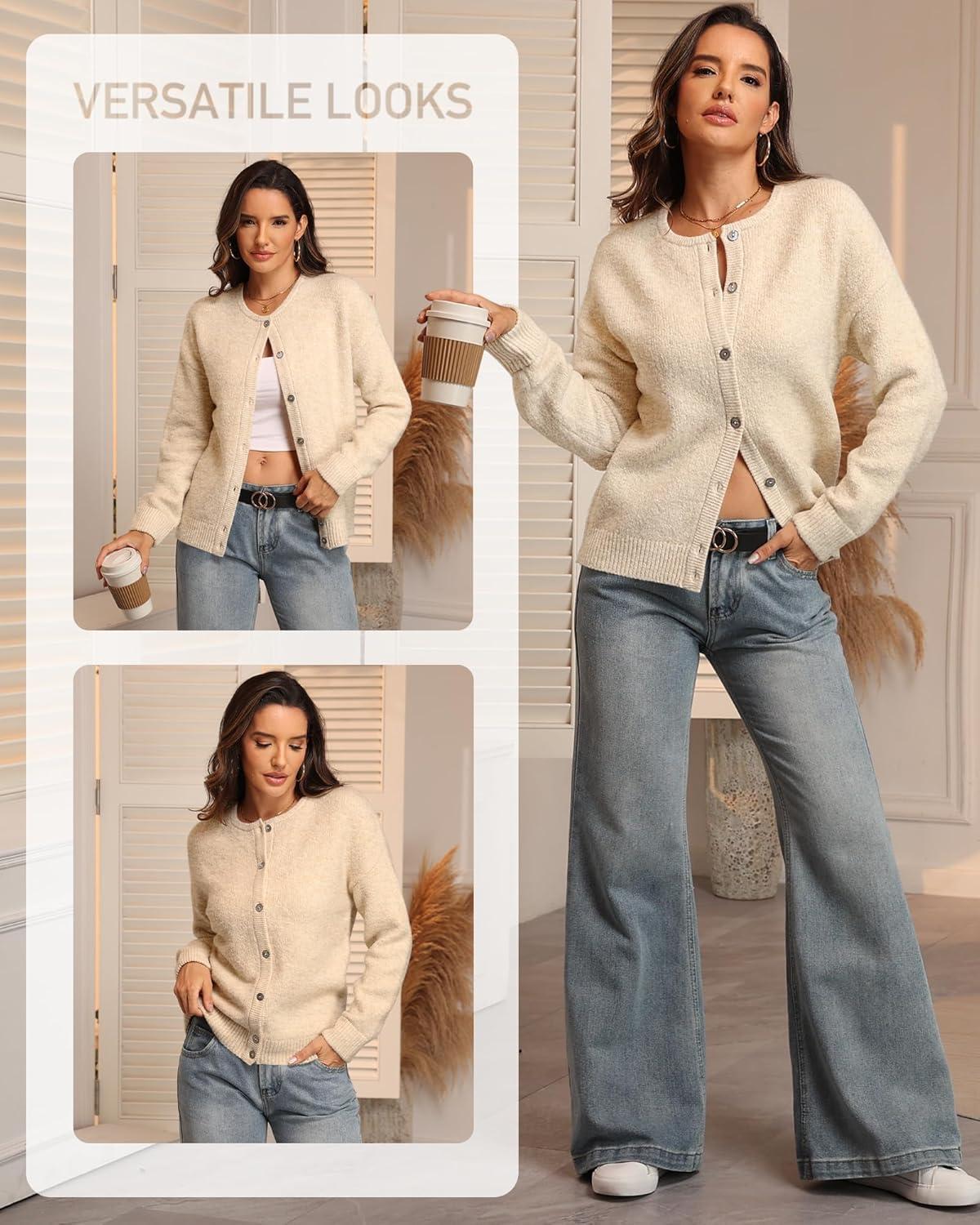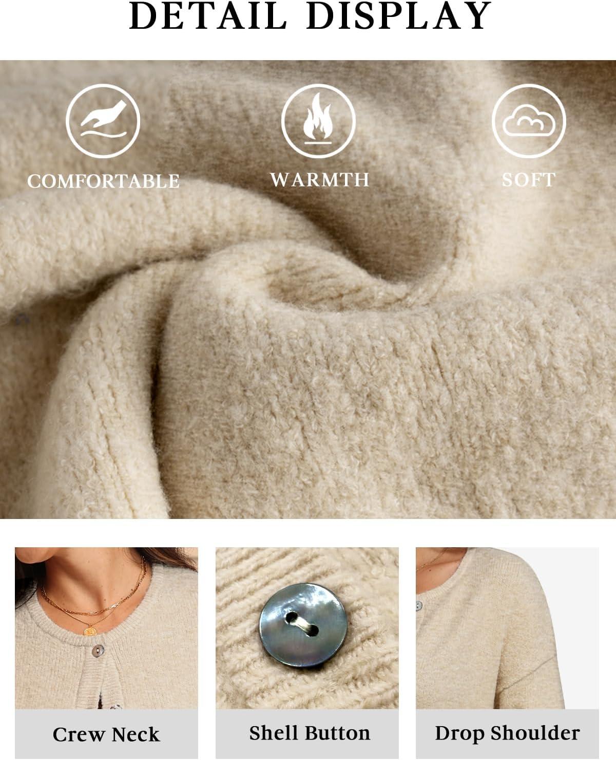 ATHMILE Fall Long Sleeve Cardigans for Women Sweater Fashion Open Front Winter Button Down Crewneck Loose Knit Jacket 2025(Khaki)