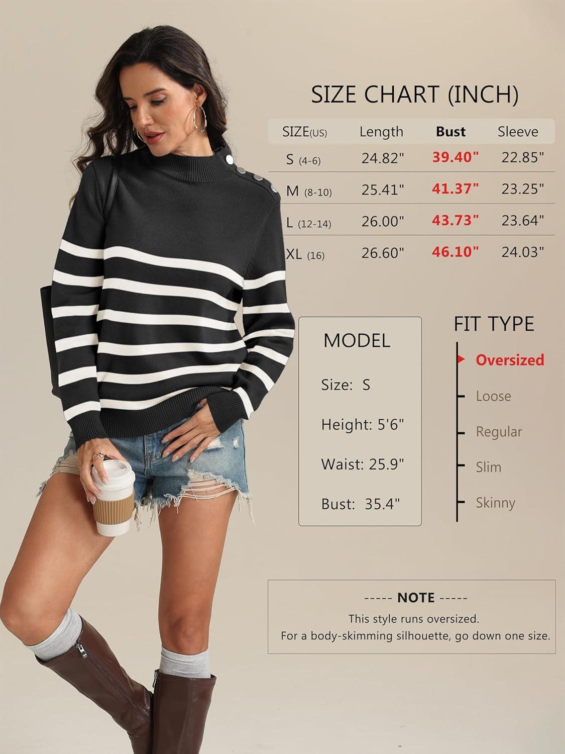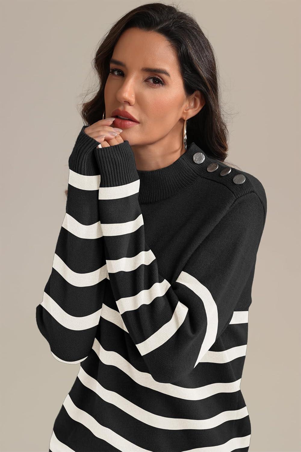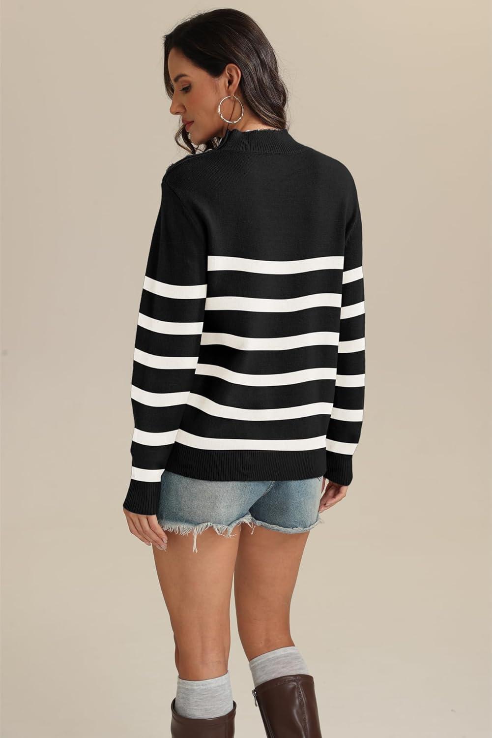 ATHMILE Fall Mock Neck Striped Sweaters for Women 2025 Winter Turtleneck Long Sleeve Knit Sweater Fashion Pullover Tops(Black)
