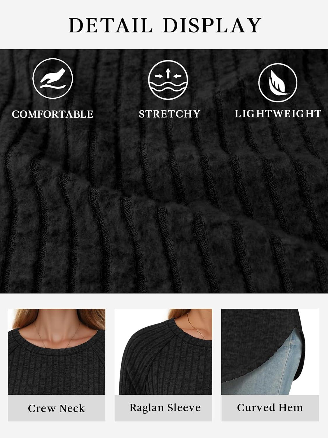 ATHMILE Long Sleeve Shirts for Women Tunic Fall Tops Loose Fit Dressy Crew Neck Basic Sweaters 2025(Black)