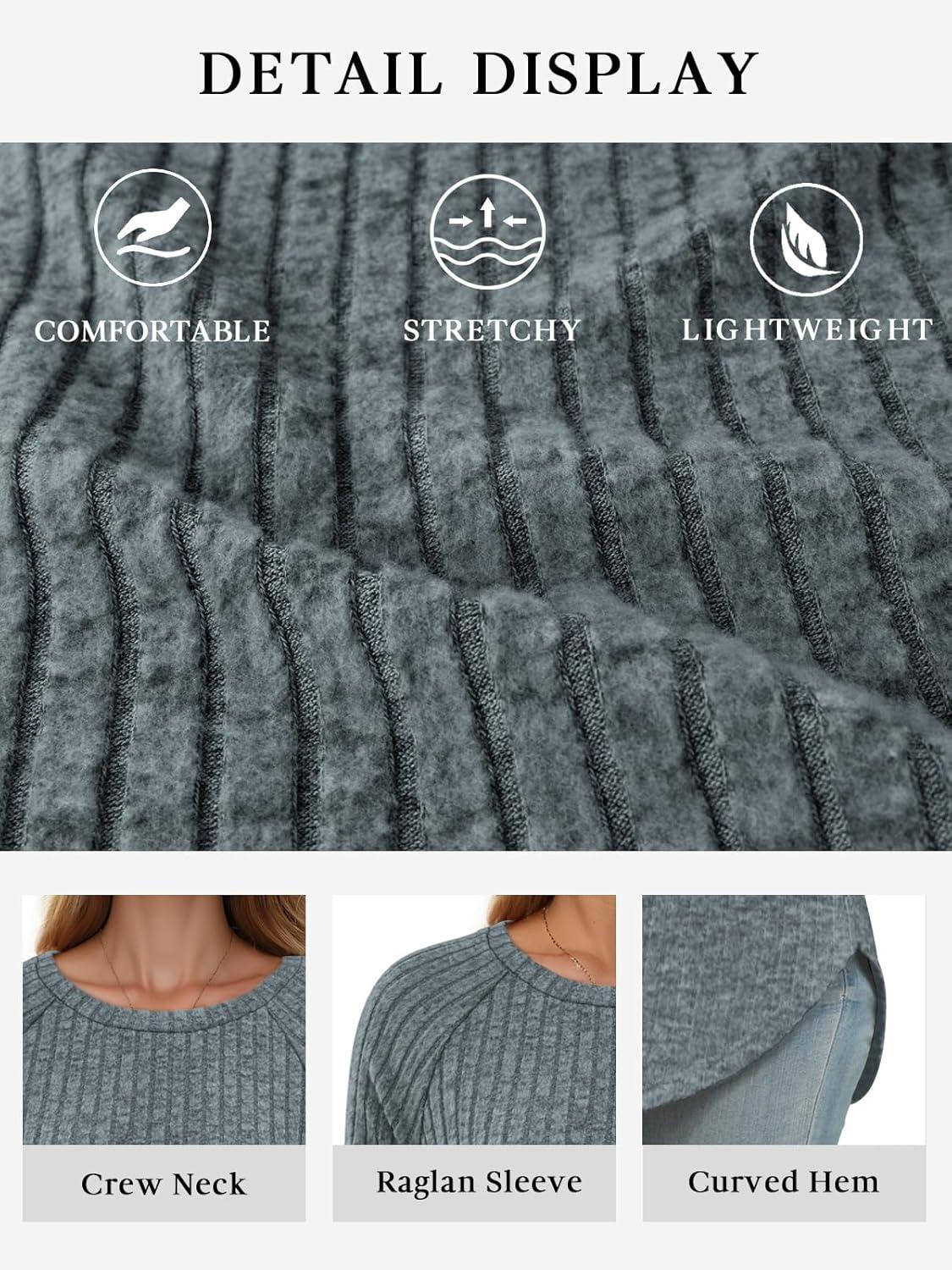 ATHMILE Long Sleeve Shirts for Women Tunic Fall Tops Loose Fit Dressy Crew Neck Basic Sweaters 2025(Blue)