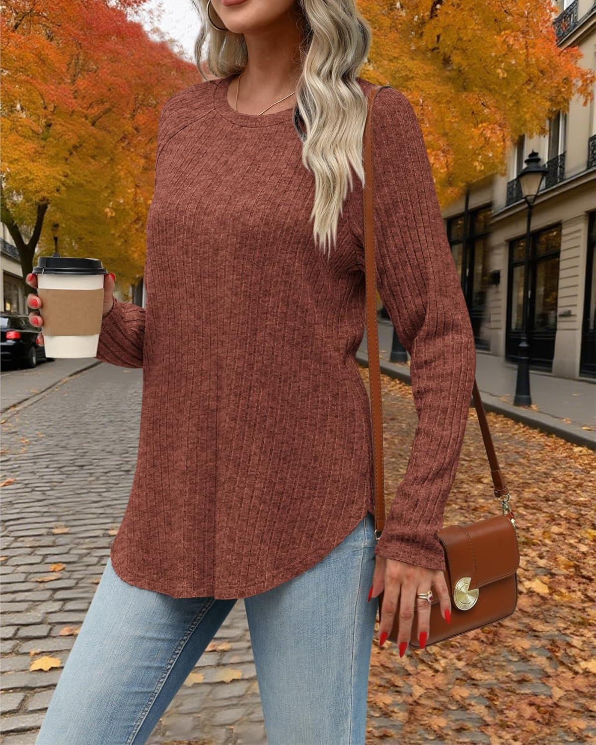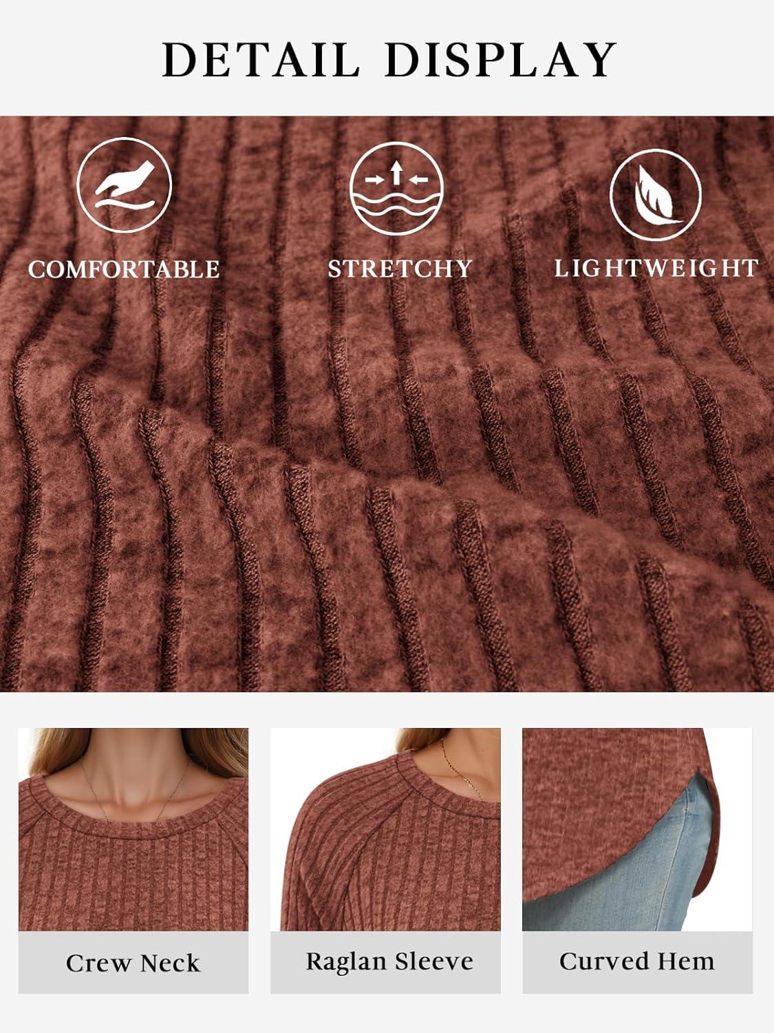 ATHMILE Long Sleeve Shirts for Women Tunic Fall Tops Loose Fit Dressy Crew Neck Basic Sweaters 2025(Caramel)