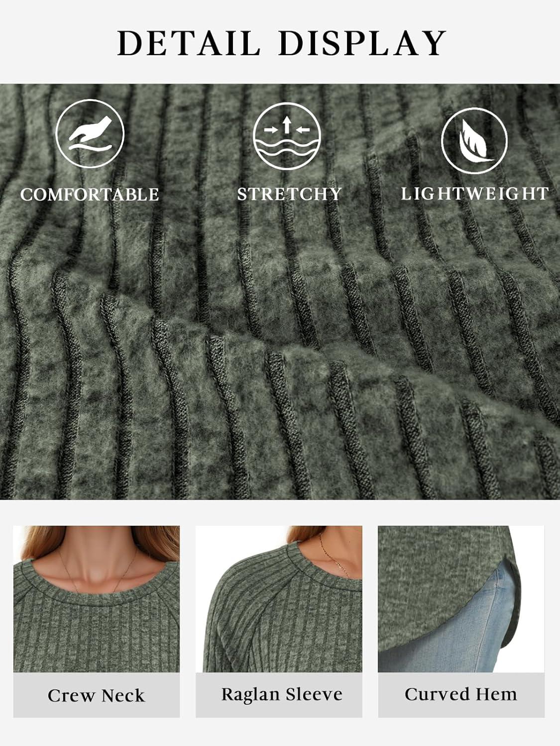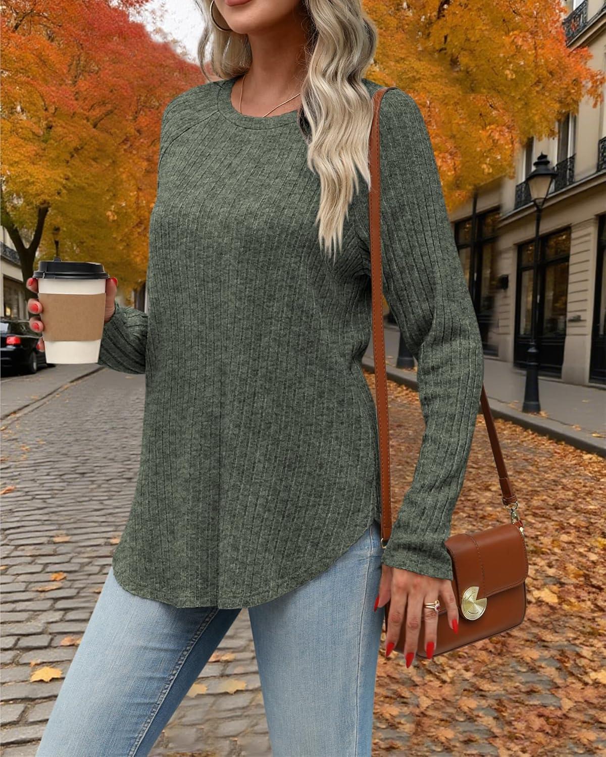 ATHMILE Long Sleeve Shirts for Women Tunic Fall Tops Loose Fit Dressy Crew Neck Basic Sweaters 2025(Green)