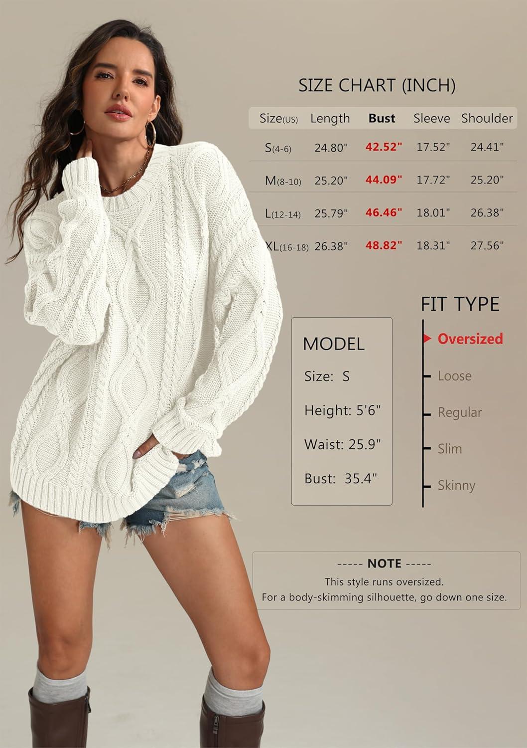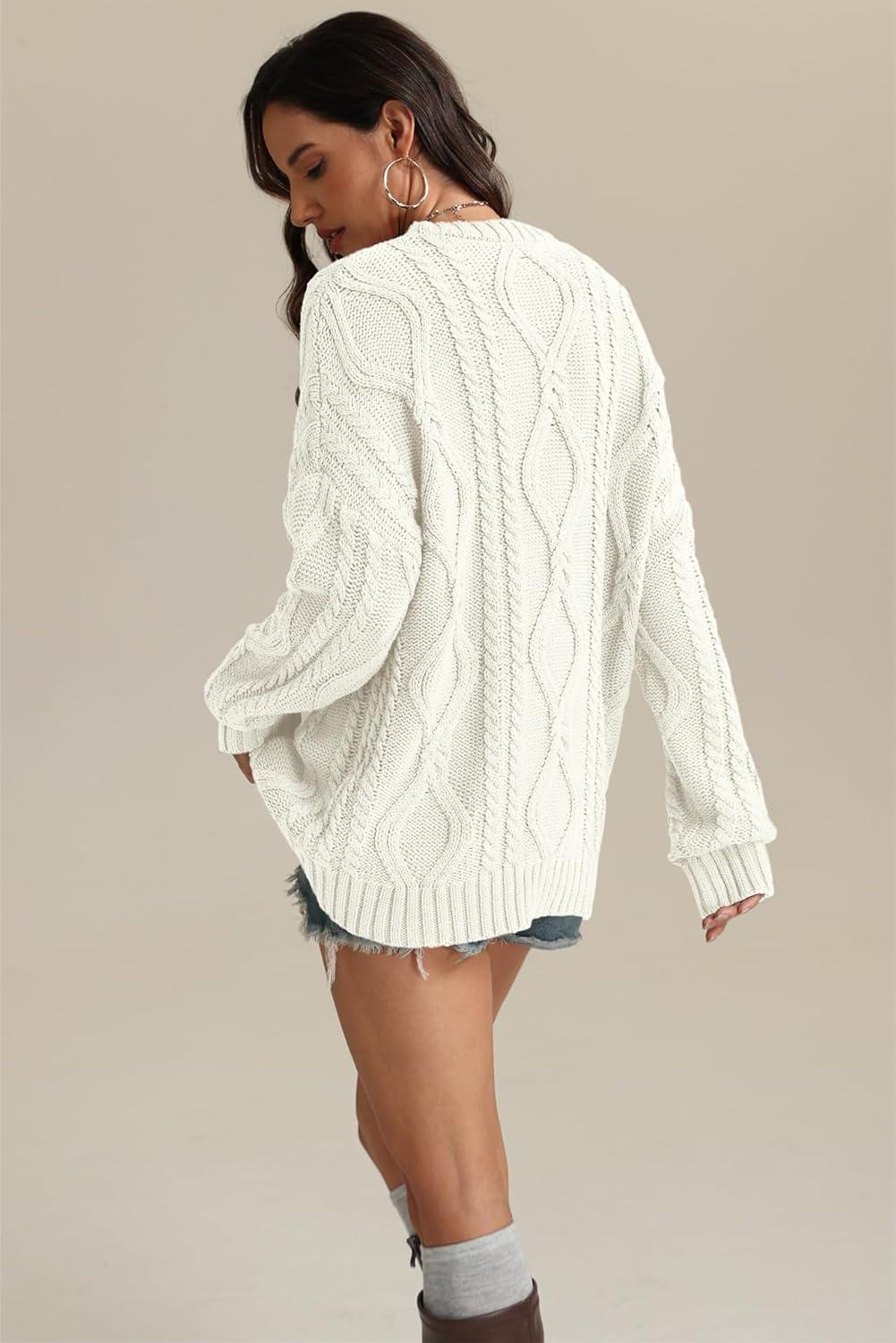 ATHMILE Oversized Cable Knit Sweaters for Women Fall Fashion Outfits Long Sleeve Loose Crewneck Winter Clothes 2025(White)
