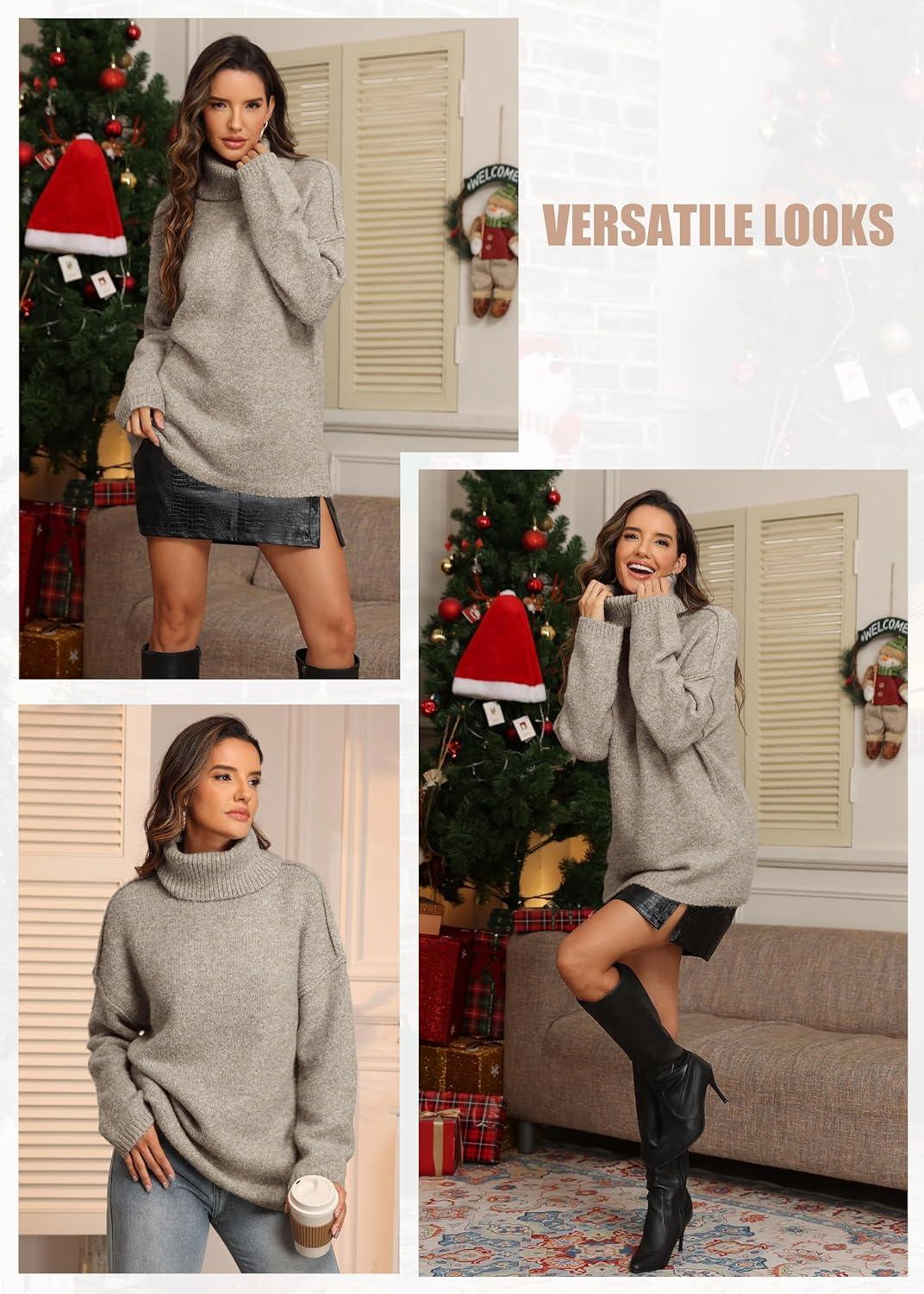 ATHMILE Oversized Chunky Sweaters for Women Fall Turtleneck Long Sleeve Knit Pullover Tops 2025 Winter Fashion Clothes(Grey)