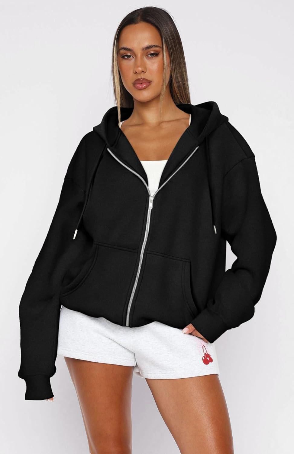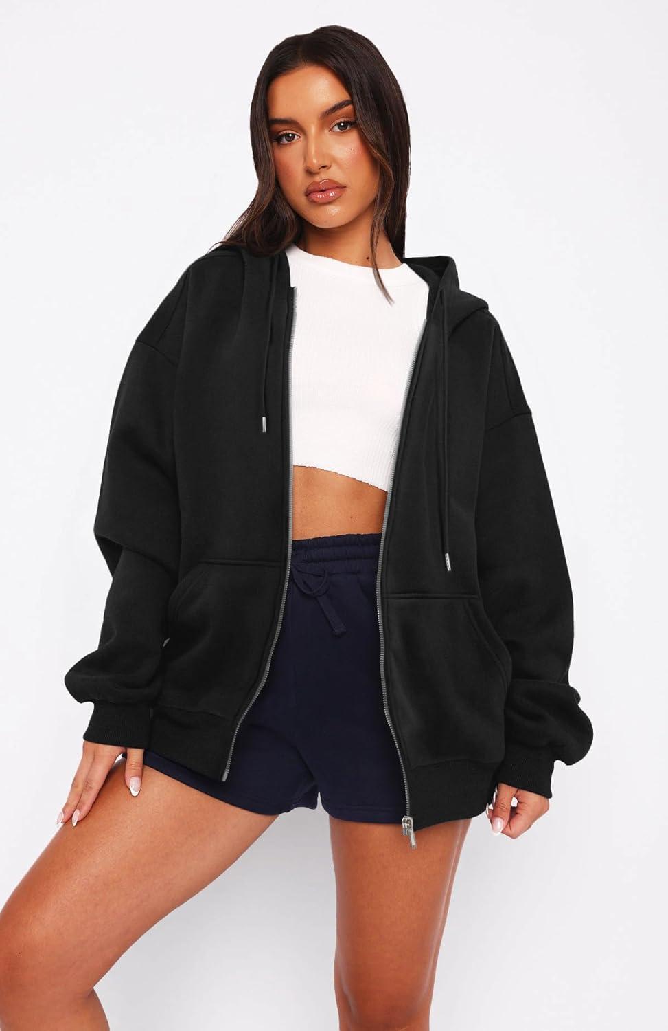 ATHMILE Oversized Hoodies for Women Fall Sweatshirts Zip Up Hoodie Casual Jackets Y2k Fashion Outfits Winter Clothes 2025(Black)