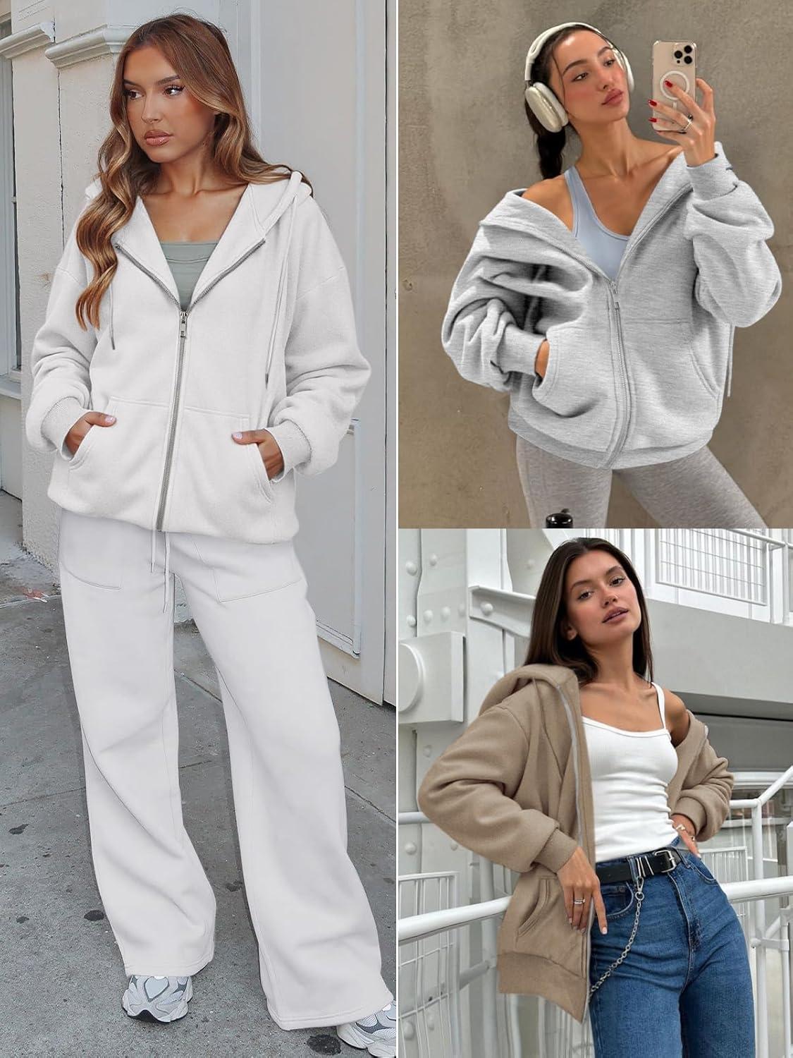 ATHMILE Oversized Hoodies for Women Fall Sweatshirts Zip Up Hoodie Casual Jackets Y2k Fashion Outfits Winter Clothes 2025(Coffeegrey)