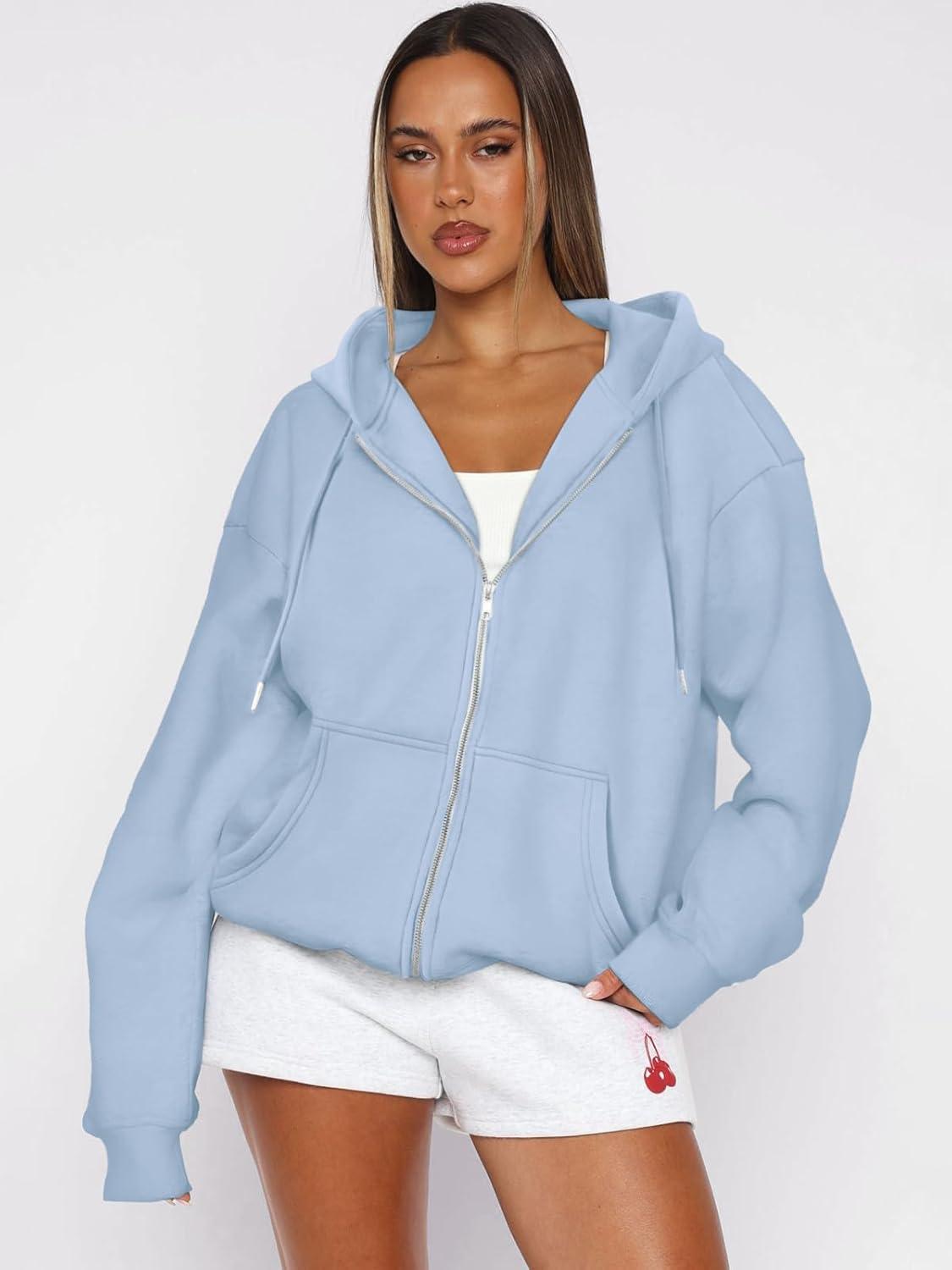 ATHMILE Oversized Hoodies for Women Fall Sweatshirts Zip Up Hoodie Casual Jackets Y2k Fashion Outfits Winter Clothes 2025(Lightblue)