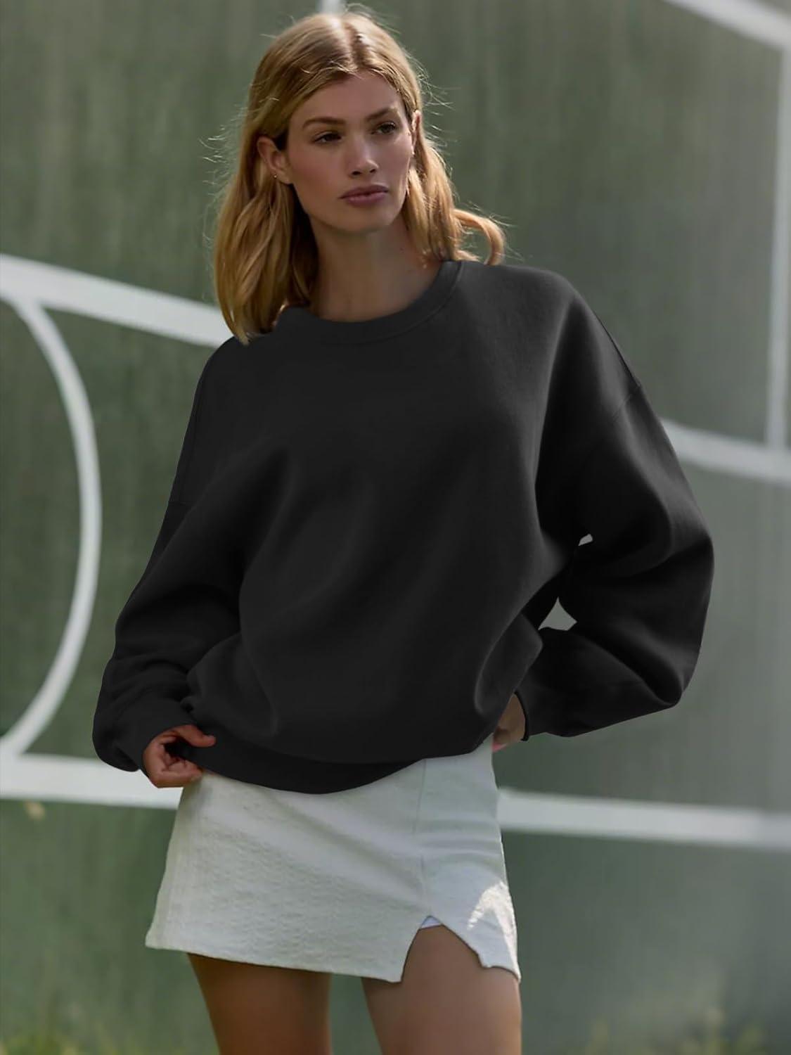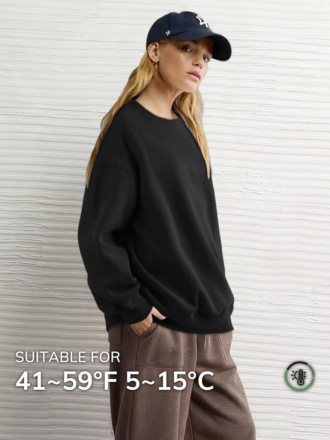 ATHMILE Oversized Sweatshirt for Women Crewneck Fleece Long Sleeve Pullover Hoodies Tops Fall Fashion Outfits Clothes 2025(Black)