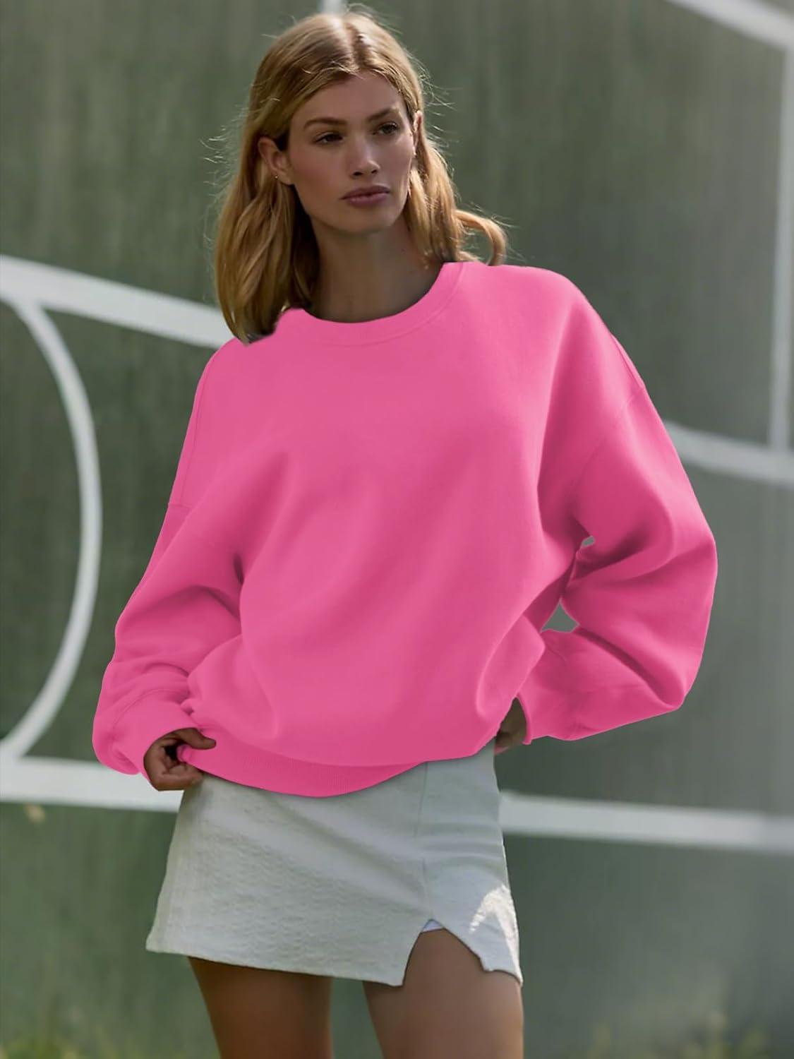 ATHMILE Oversized Sweatshirt for Women Crewneck Fleece Long Sleeve Pullover Hoodies Tops Fall Fashion Outfits Clothes 2025(Hot Pink)