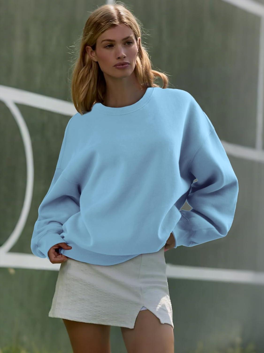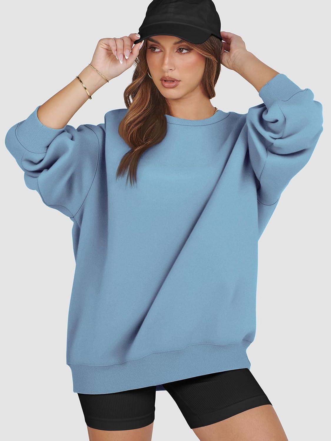 ATHMILE Oversized Sweatshirt for Women Crewneck Fleece Long Sleeve Pullover Hoodies Tops Fall Fashion Outfits Clothes 2025(Lightblue)