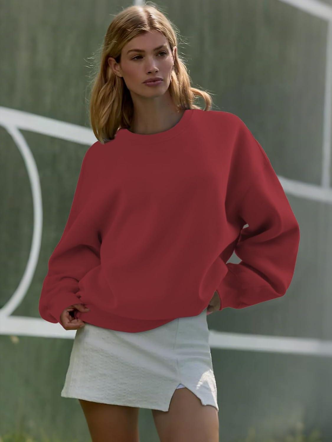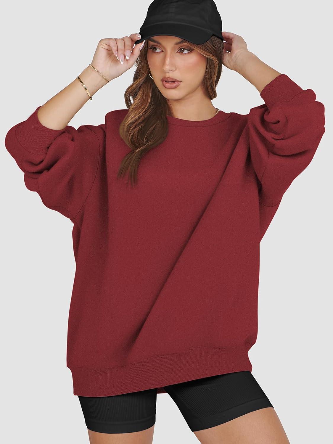 ATHMILE Oversized Sweatshirt for Women Crewneck Fleece Long Sleeve Pullover Hoodies Tops Fall Fashion Outfits Clothes 2025(Wine Red)