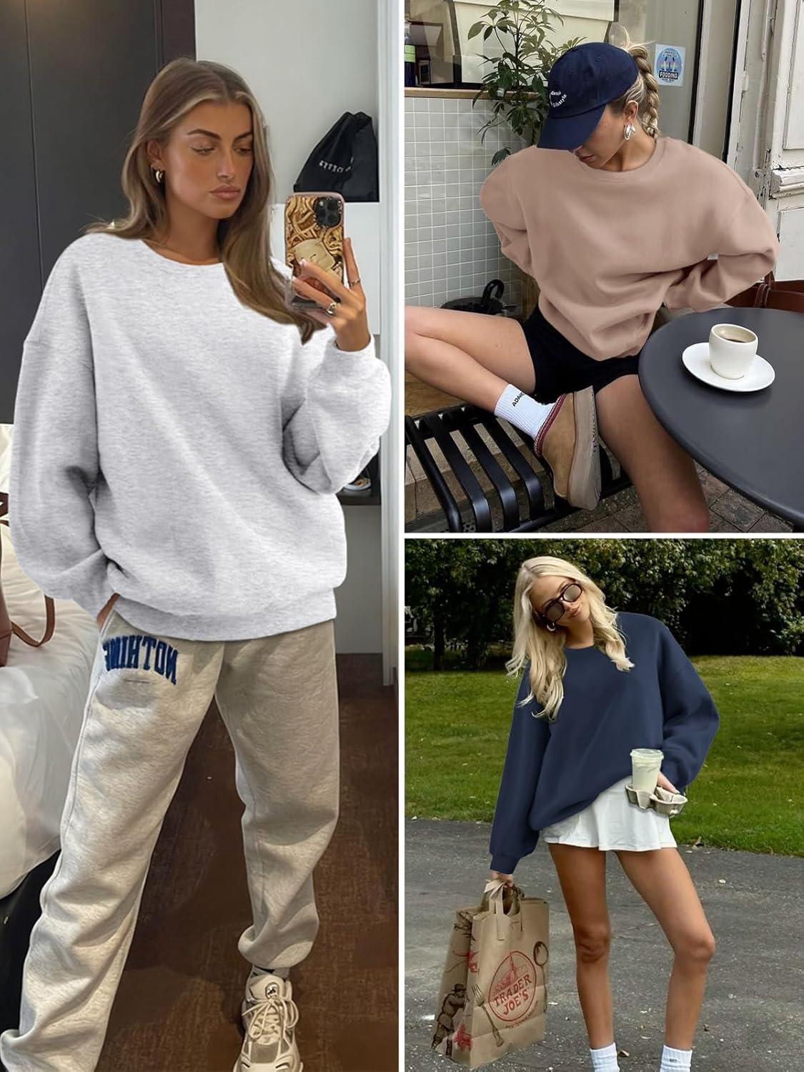 imageATHMILE Oversized Sweatshirt for Women Crewneck Fleece Long Sleeve Pullover Hoodies Tops Fall Fashion Outfits Clothes 2025Dark Grey