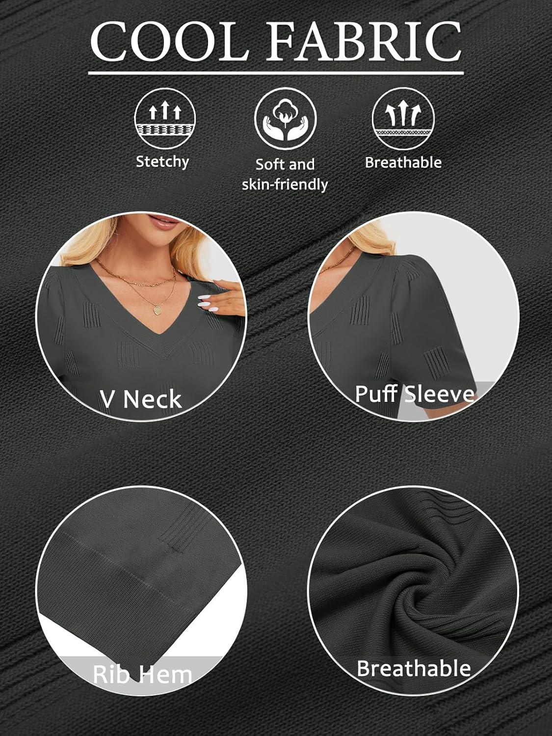 ATHMILE Short Sleeve V Neck Sweaters Dressy Casual Blouses Lightweight Thin Knit Fashion Shirts Summer Tops for Women(Dark Grey)
