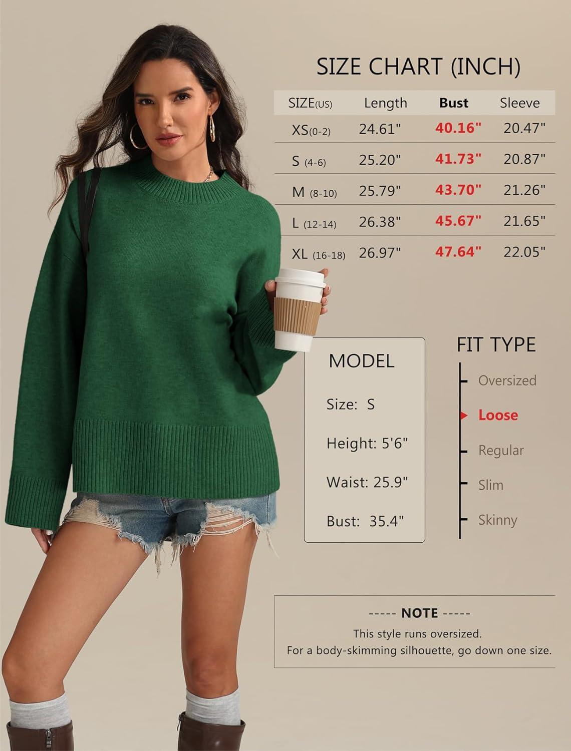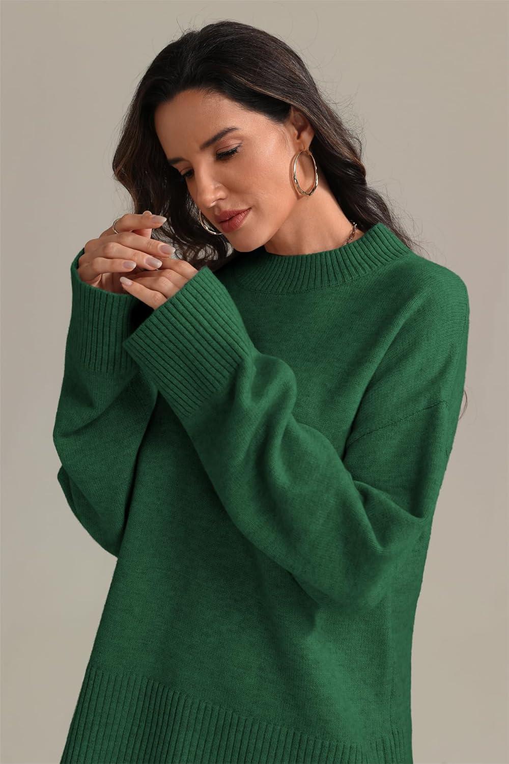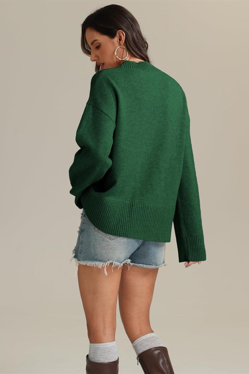 ATHMILE Sweaters for Women 2025 Fall Fashion Outfits Long Sleeve Loose Casual Crewneck Ribbed Knit Pullover Winter Clothes(Green)
