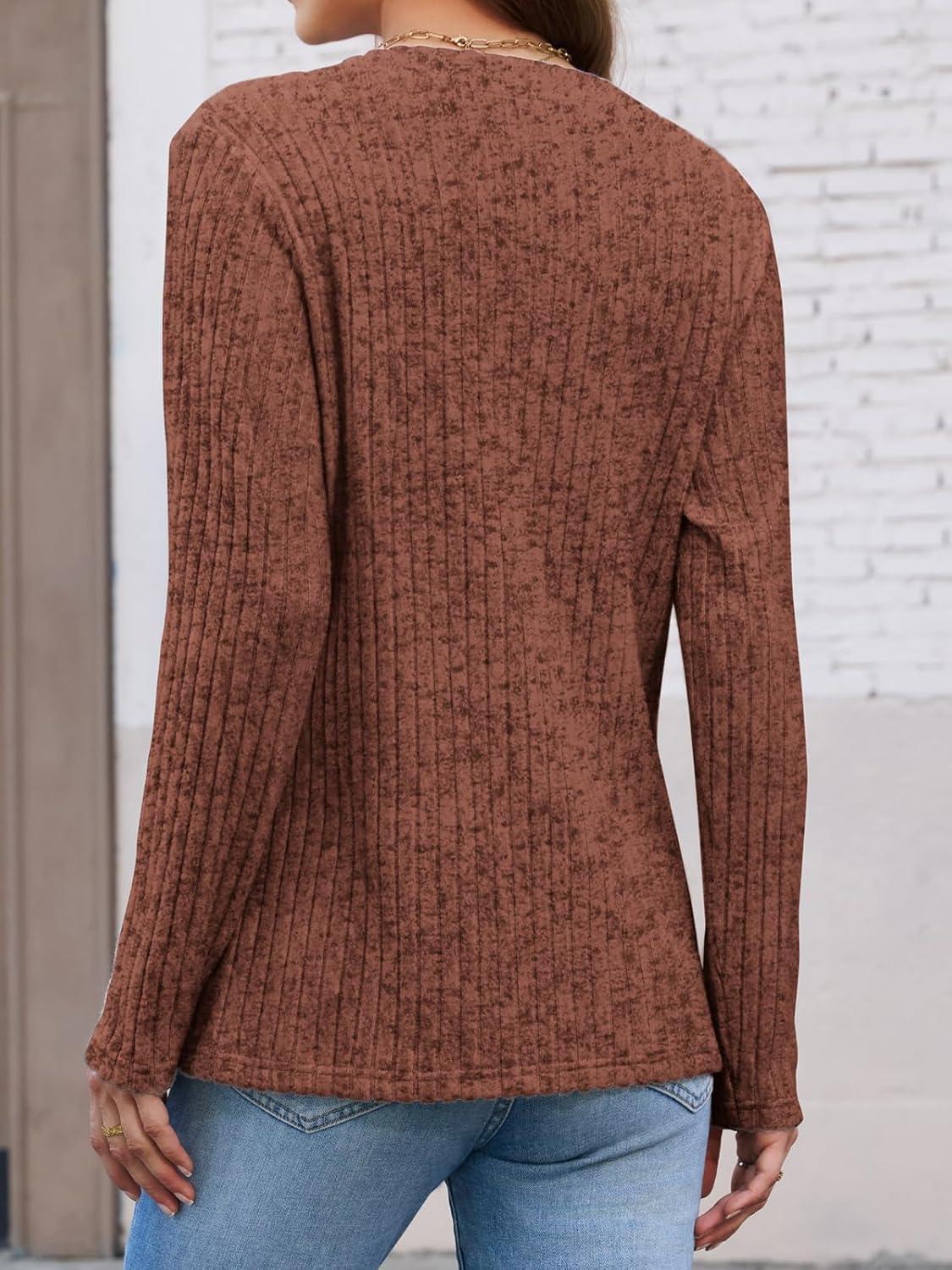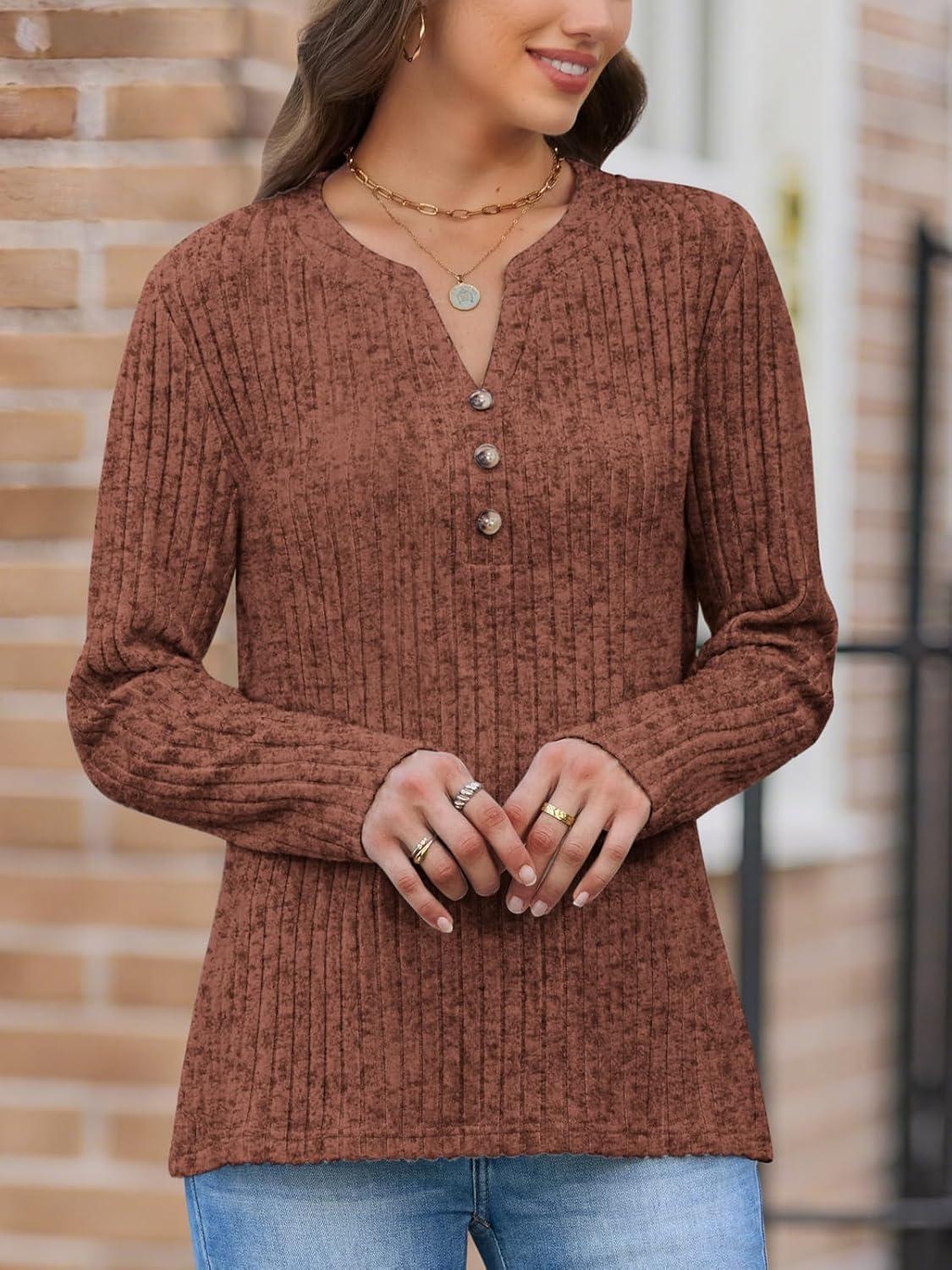 ATHMILE Sweaters for Women Fashion Fall Outfits Long Sleeve Tops Pullover V Neck Casual Loose Sweatshirt(Caramel)