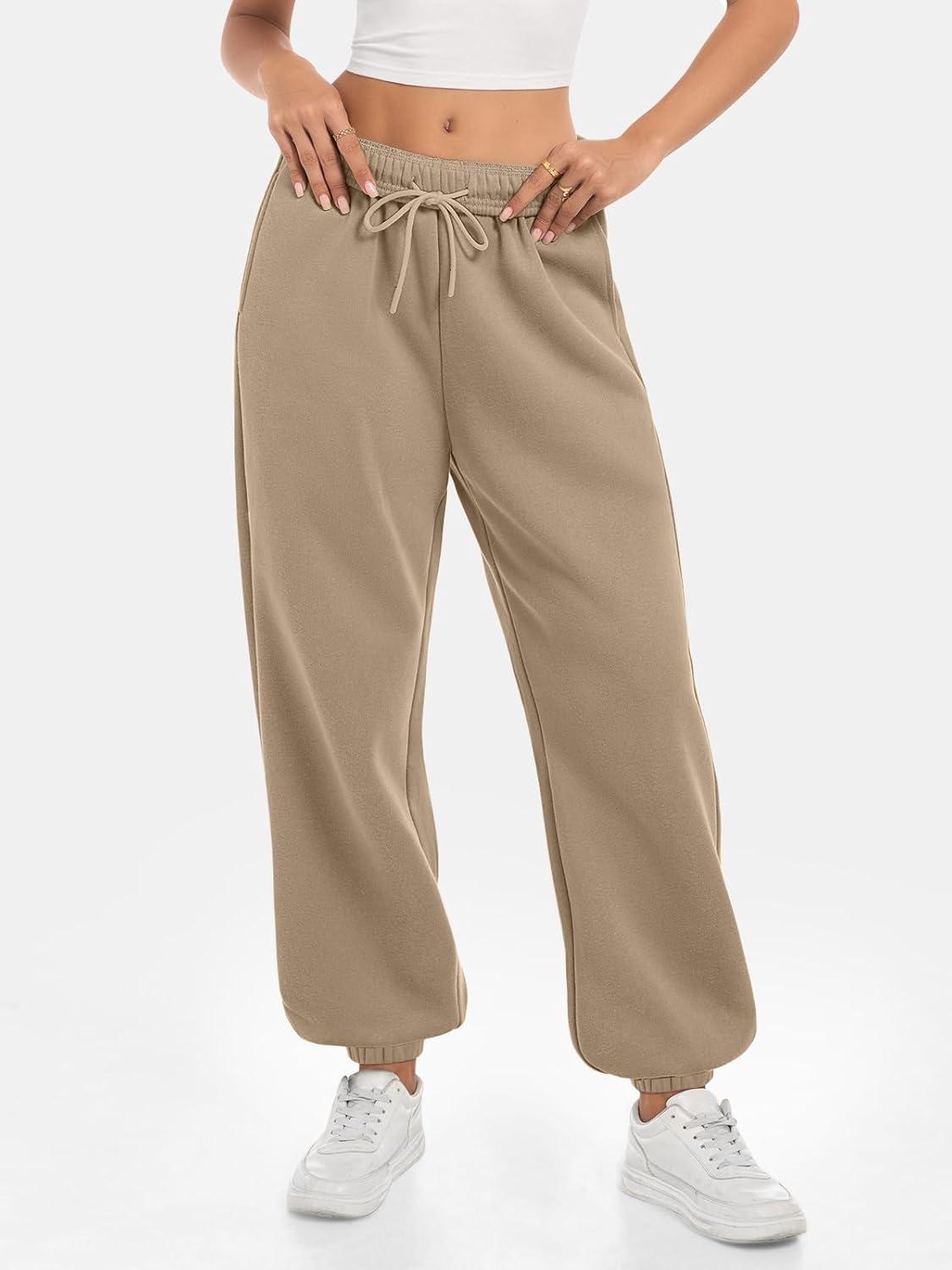 ATHMILE Sweatpants Women Baggy Lounge Pants Workout Gym Active High Waisted Comfy Joggers for Women Fall Clothes 2025(Fleece-brown)