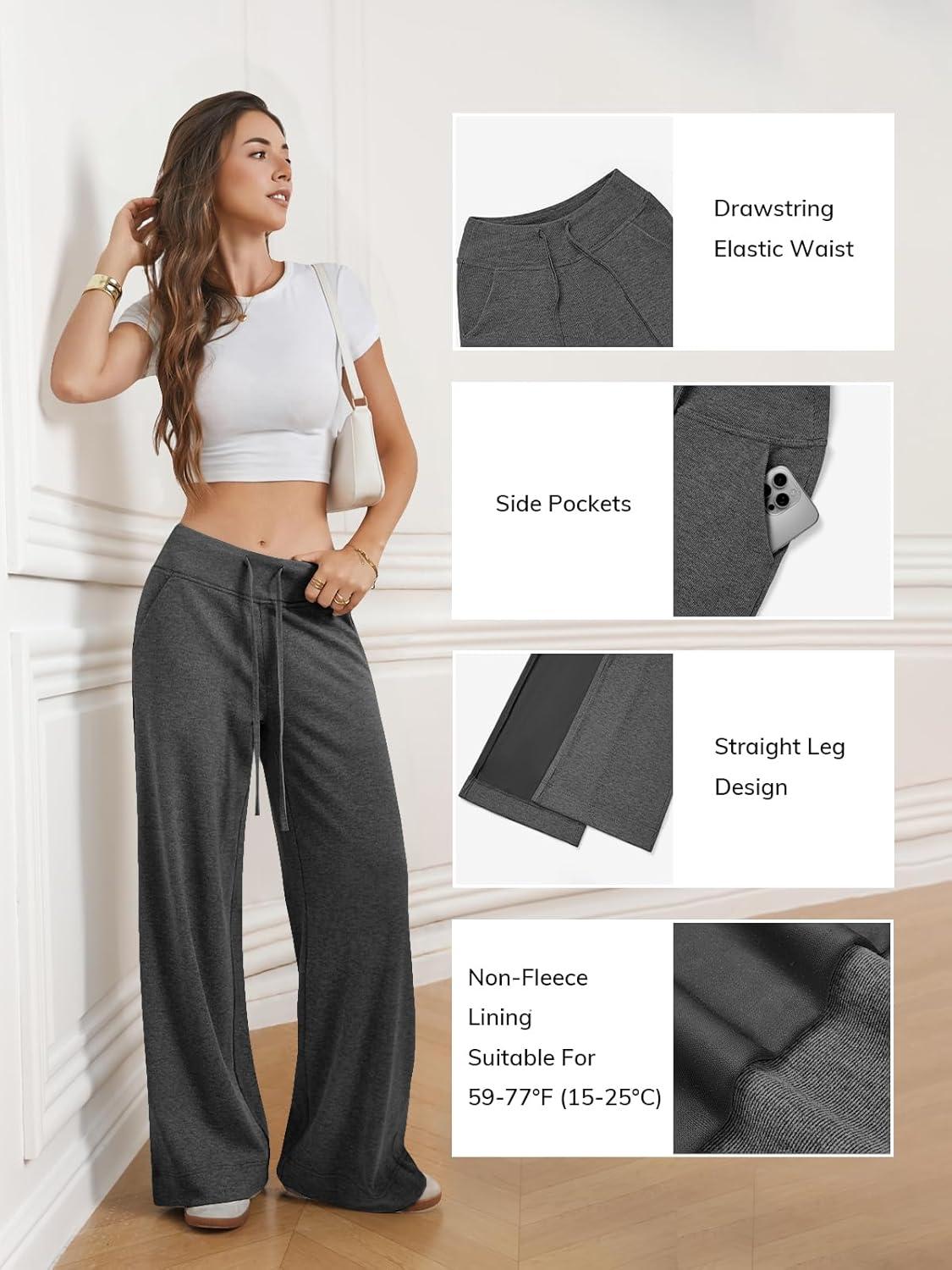 ATHMILE Womens Wide Leg Sweatpants Air Fabric Straight Lowrise Drawstring Elastic Low Waist Fall Clothing Pockets 2025(Army Green)