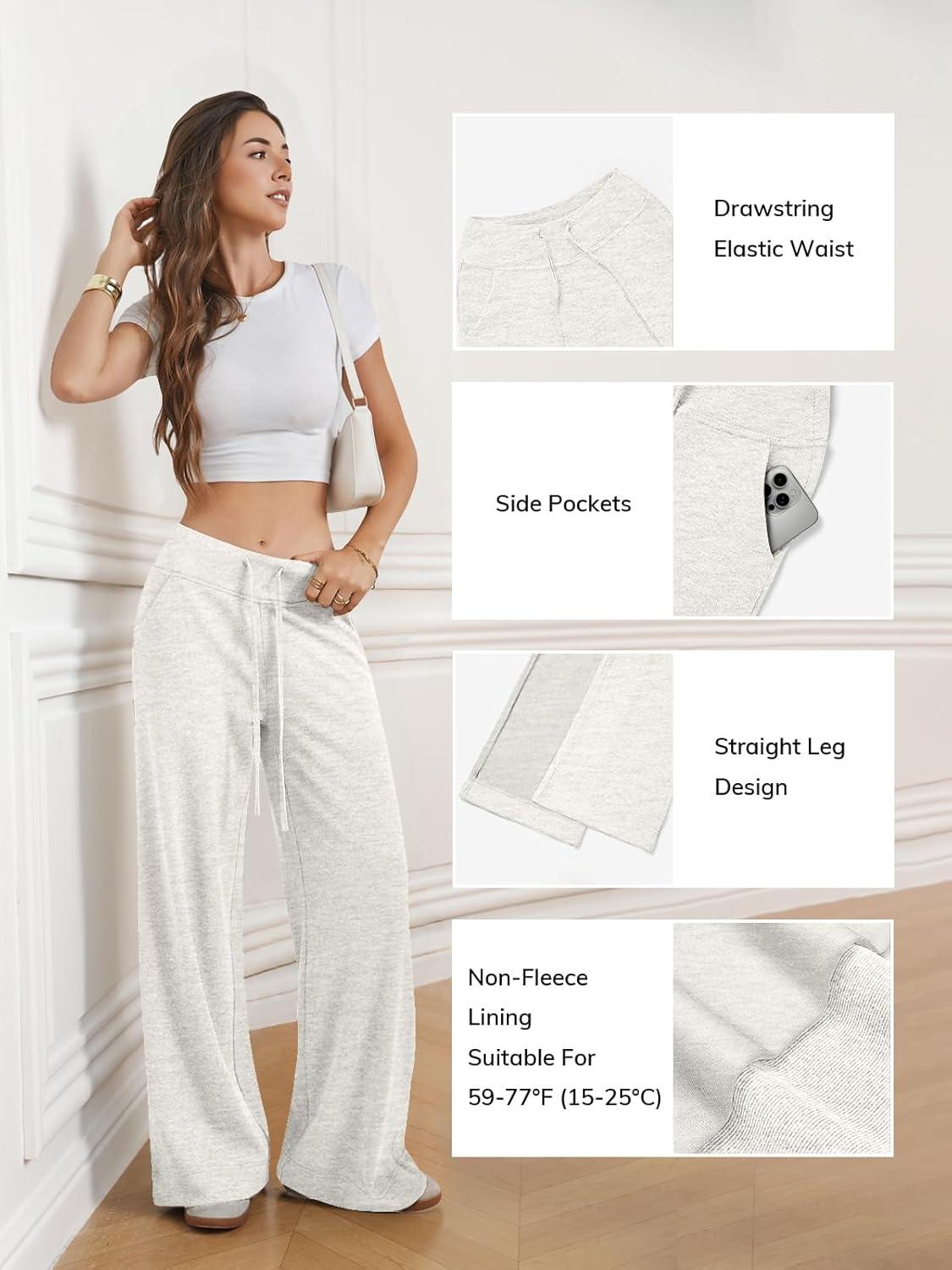 ATHMILE Sweatpants Women Fall Outfits Wide Leg Baggy Pants High-Waisted Drawstring Sweat Pants Fashion Joggers with Pocket(Grey White)
