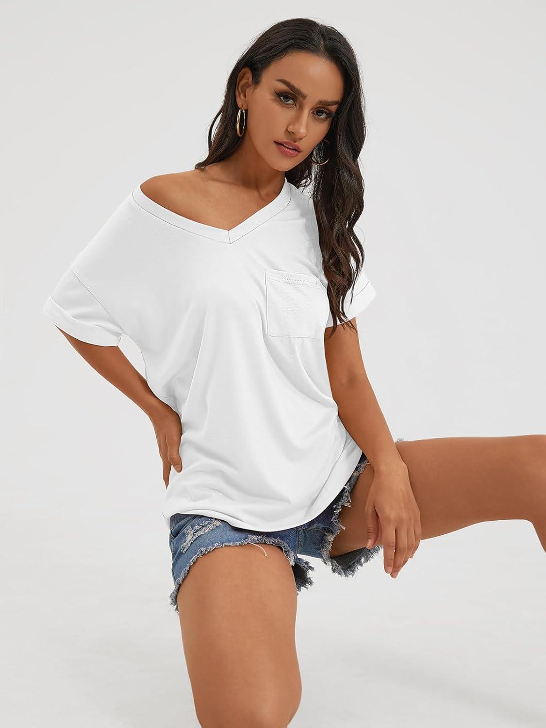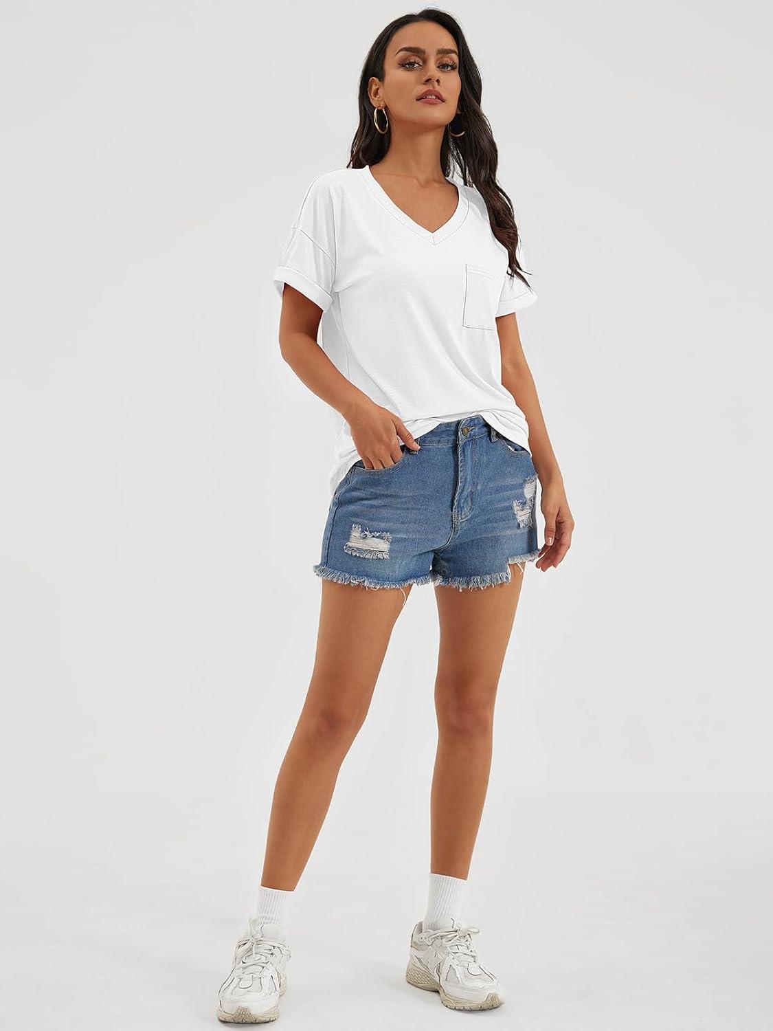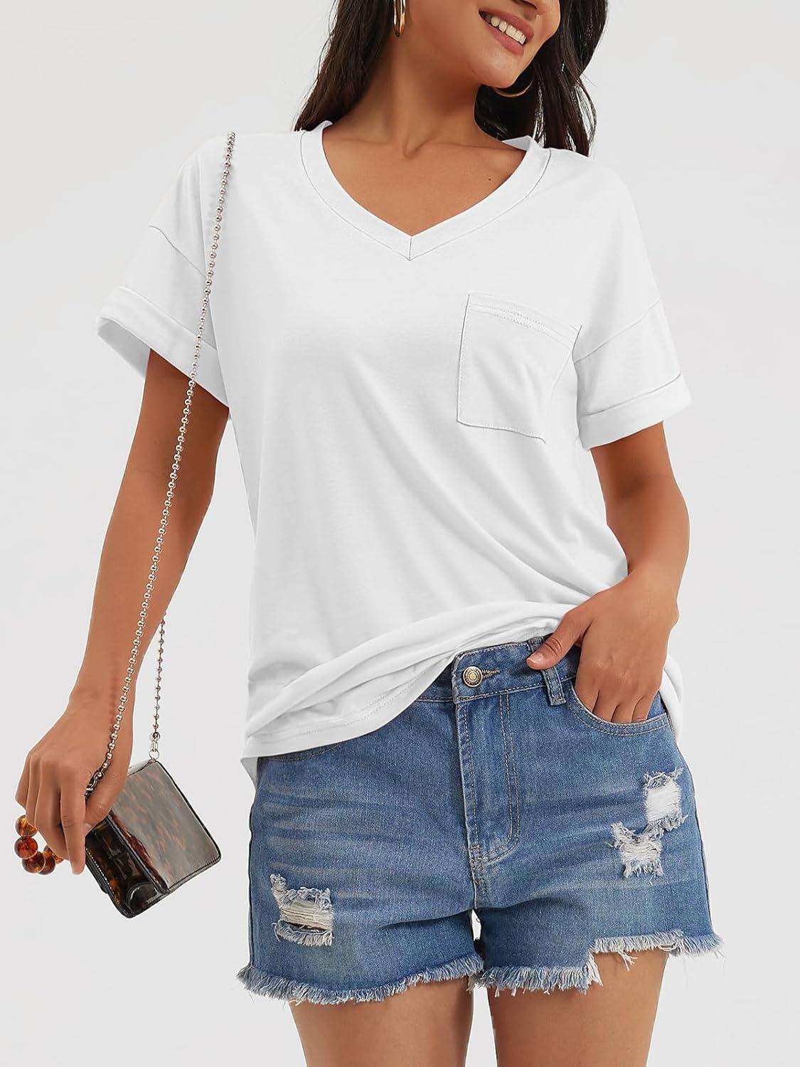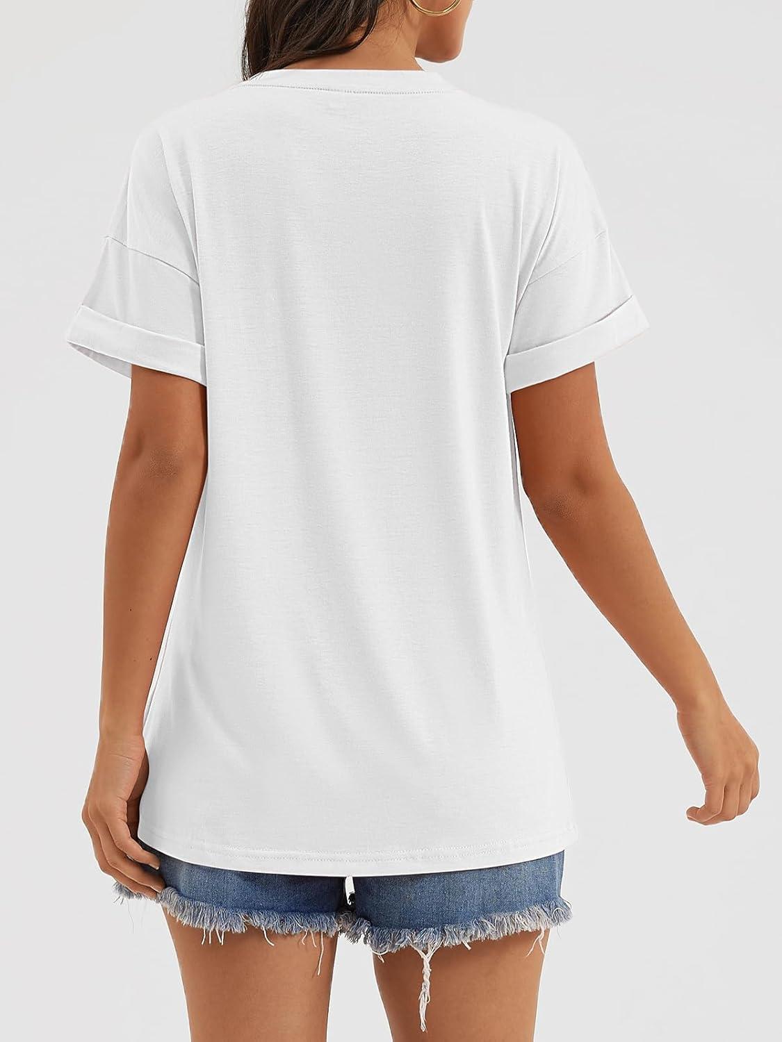 ATHMILE T Shirts Short Sleeve V Neck Tees for Women Fashion Tops Trendy Casual Summer Outfits Clothes 2024(White)