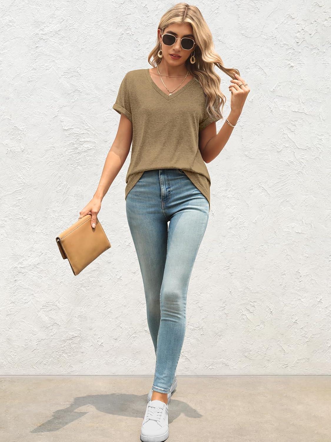 Get the ATHMILE T Shirts Short Sleeve V Neck Tees for Women Fashion Tops Trendy Lightweight Casual Summer Outfits Clothes 2025 Beach(Coffee) you want at a price you can afford with our markdown sale.