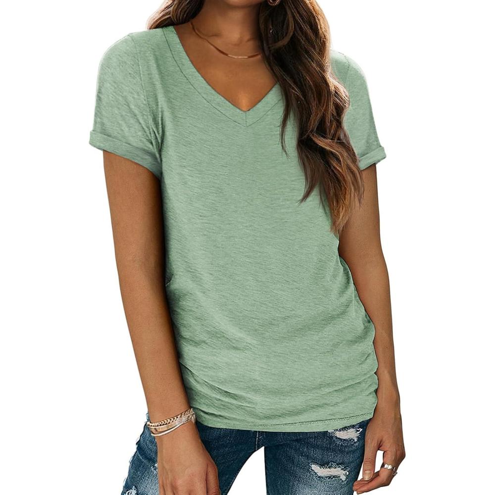 ATHMILE T Shirts Short Sleeve V Neck Tees for Women Fashion Tops Trendy Lightweight Casual Summer Outfits Clothes 2025 Beach(Lightgreen)
