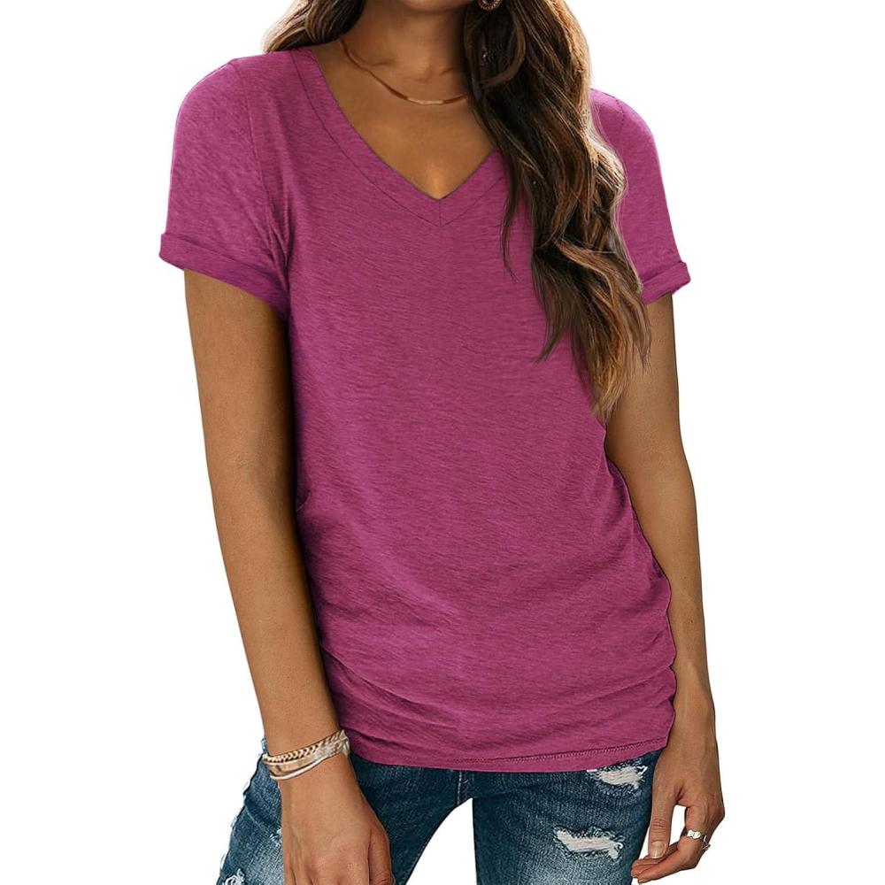 ATHMILE T Shirts Short Sleeve V Neck Tees for Women Fashion Tops Trendy Lightweight Casual Summer Outfits Clothes 2025 Beach(Purple)