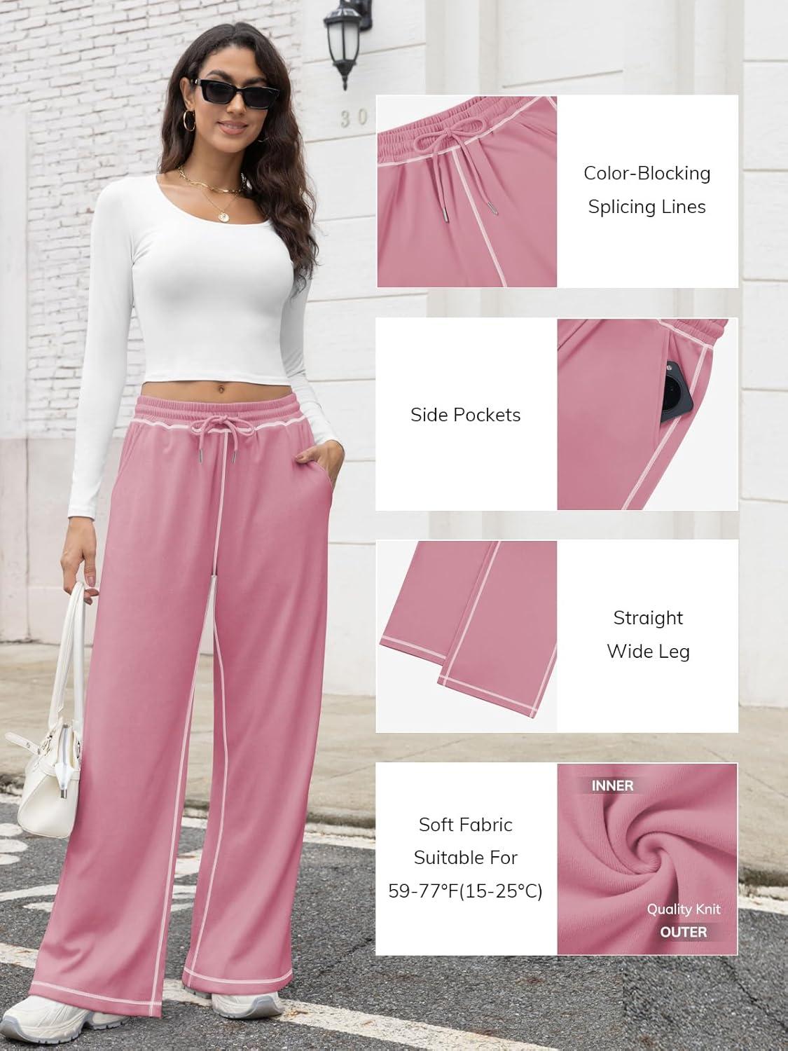 ATHMILE Track Pants Women Sweatpants Wide Leg Straight Drawstring Teen Girl Fall Jogging Soft Lounge Athletic Pajama Joggers(Pink)