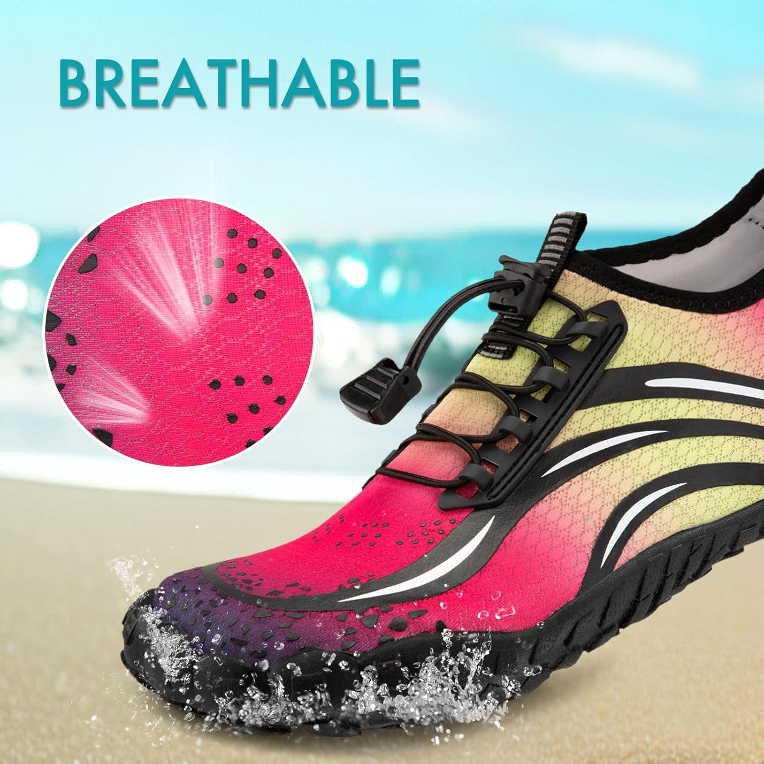 ATHMILE Water Shoes for Women Men Quick Dry Beach Barefoot Aqua Swim Shoes Non-Slip for Wading Rafting Hiking Kayaking(A Pink Purple)