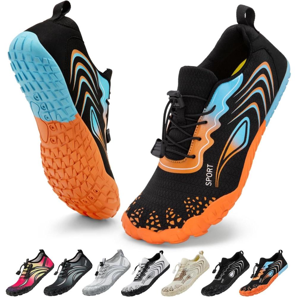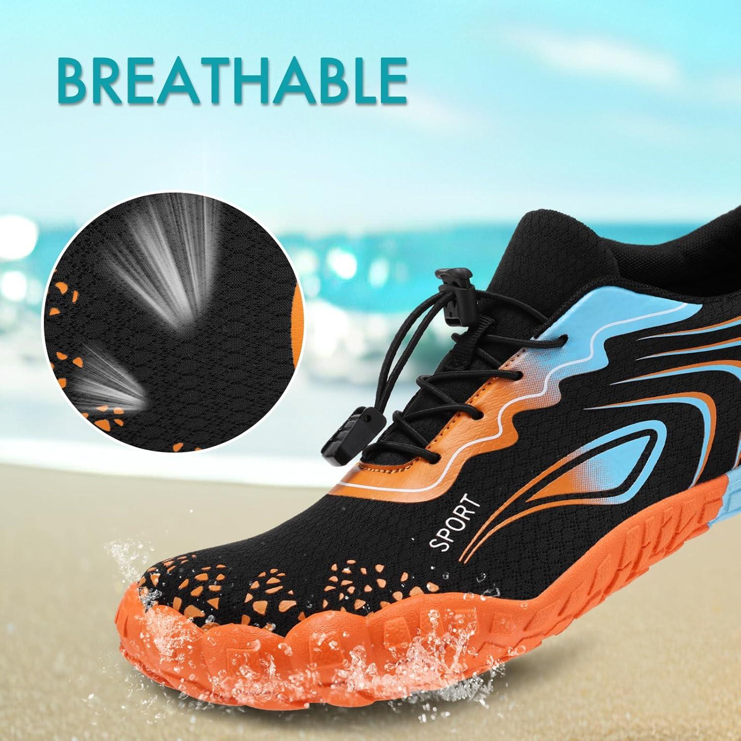 ATHMILE Water Shoes for Women Men Quick Dry Beach Barefoot Aqua Swim Shoes Non-Slip for Wading Rafting Hiking Kayaking(C Orange)
