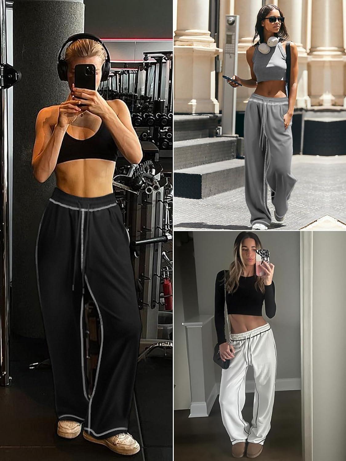 ATHMILE Women Sweatpants Track Wide Leg Drawstring Soft Jogging Straight Pajama Sweats Lounge Teen Girl Athletic Pants 2025(Grey)