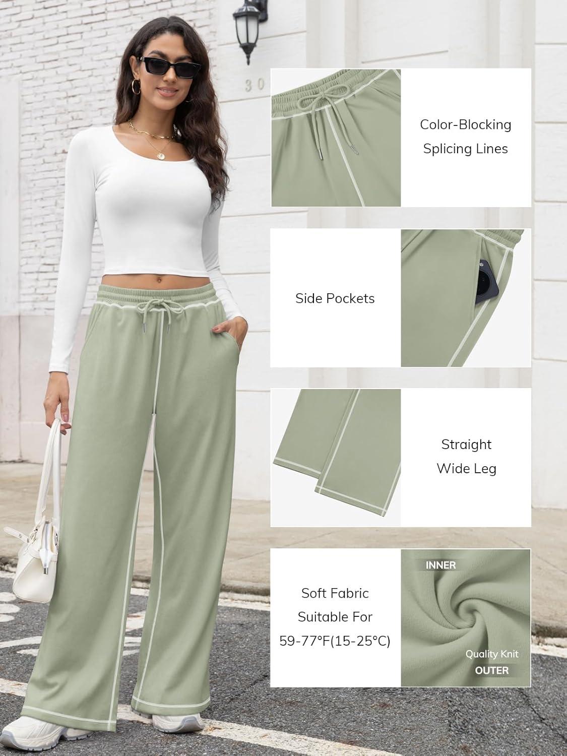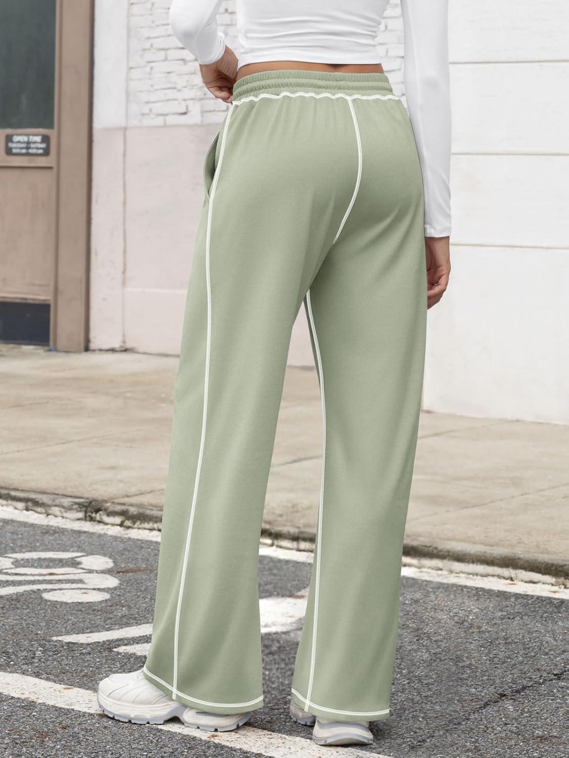 ATHMILE Women Sweatpants Track Wide Leg Drawstring Soft Jogging Straight Pajama Sweats Lounge Teen Girl Athletic Pants 2025(Grey Green)