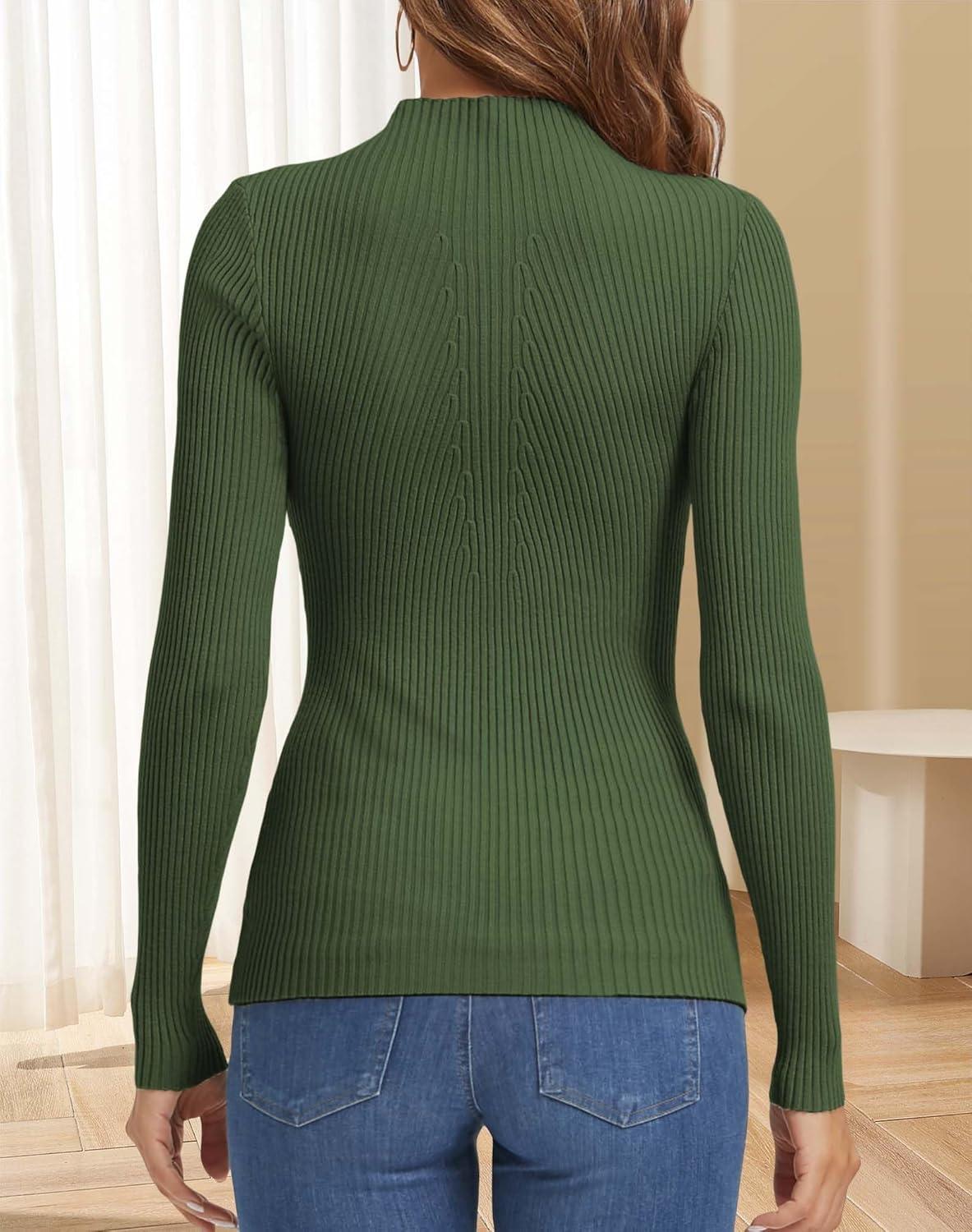 ATHMILE Women’s 2025 Fall Long Sleeve Pullover Ribbed Knit Sweater Low Mock Neck Slim Fit Basic Casual Tee Tops(Army Green)