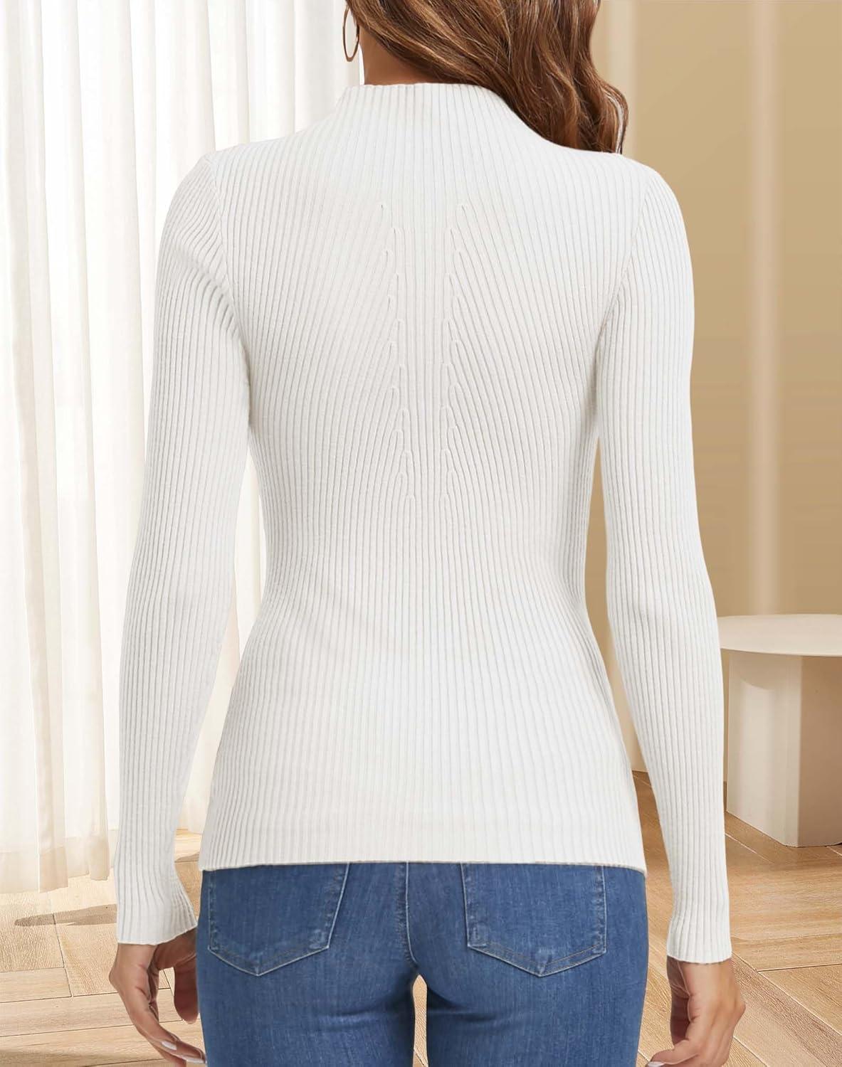 ATHMILE Women’s 2025 Fall Long Sleeve Pullover Ribbed Knit Sweater Low Mock Neck Slim Fit Basic Casual Tee Tops(White)