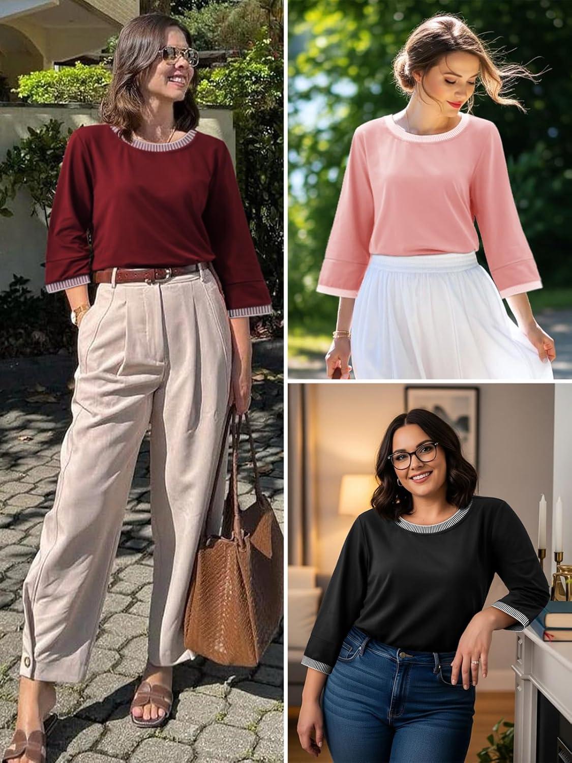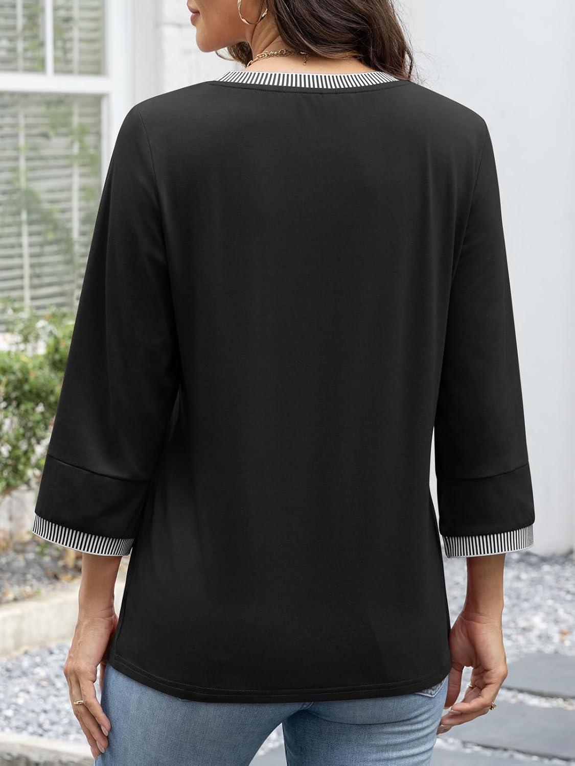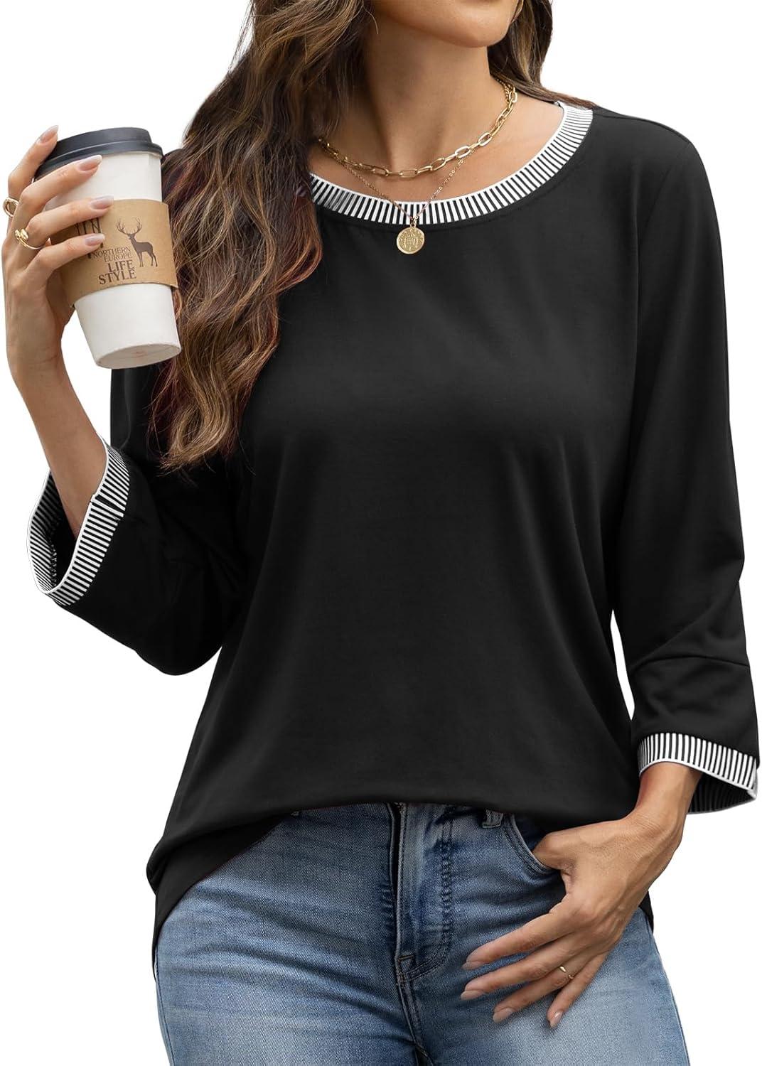 Get your hands on our newest ATHMILE Women’s 3/4 Length Sleeve Tops Dressy Casual Striped Crew Neck Fall T Shirts Spring Blouse Summer Tunics(Black) and enjoy a limited-time discount offer.