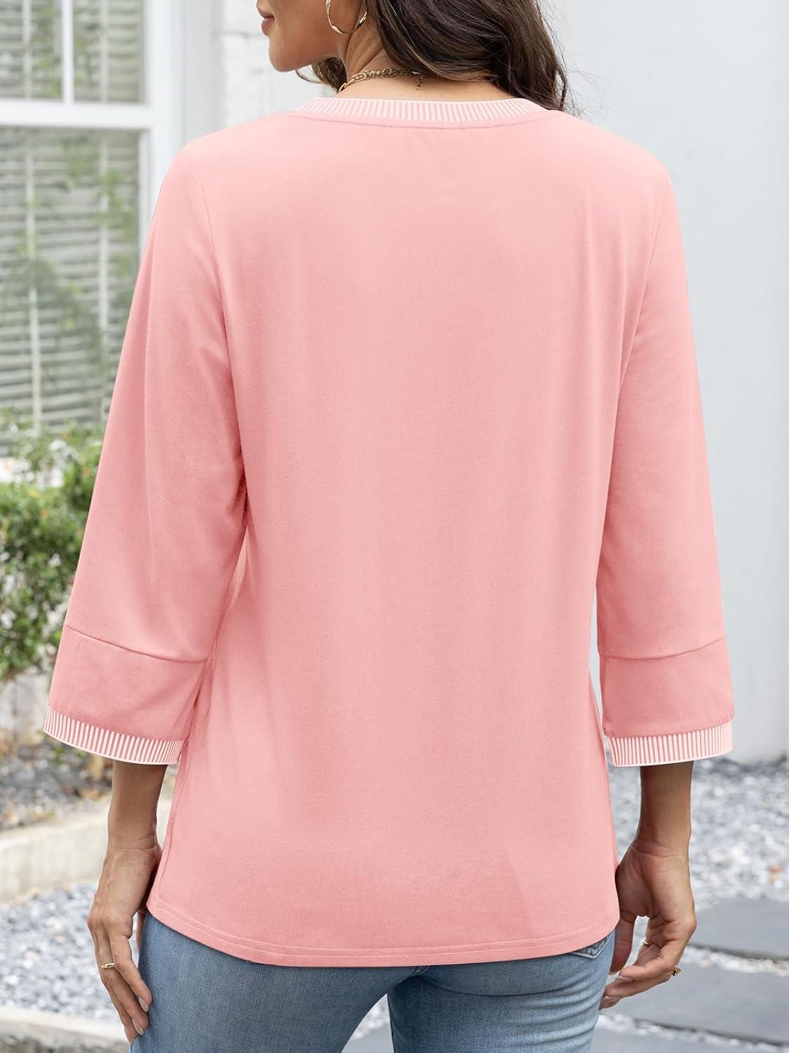 ATHMILE Women's 3/4 Length Sleeve Tops Dressy Casual Striped Crew Neck Fall T Shirts Spring Blouse Summer Tunics