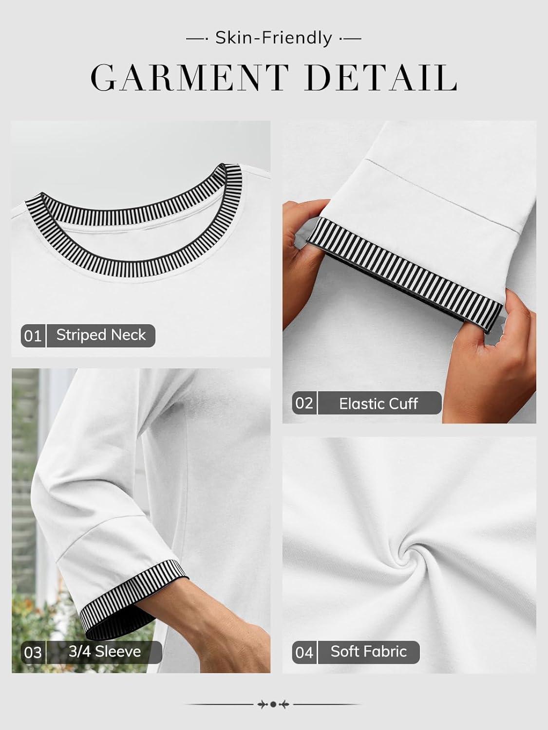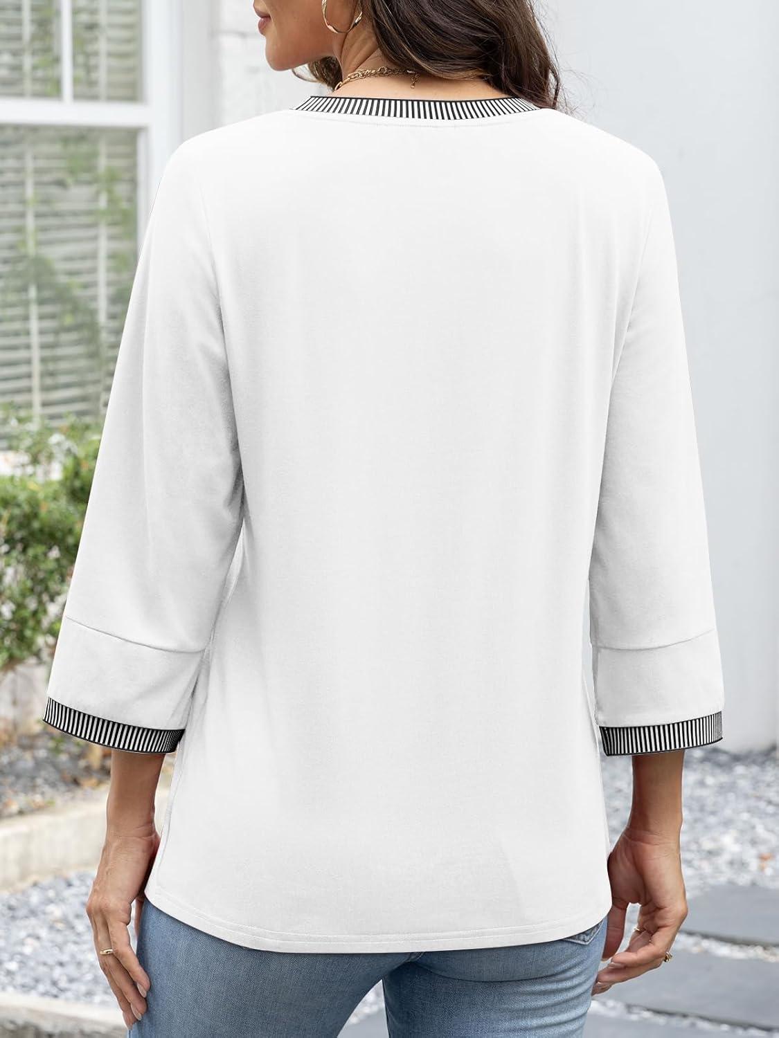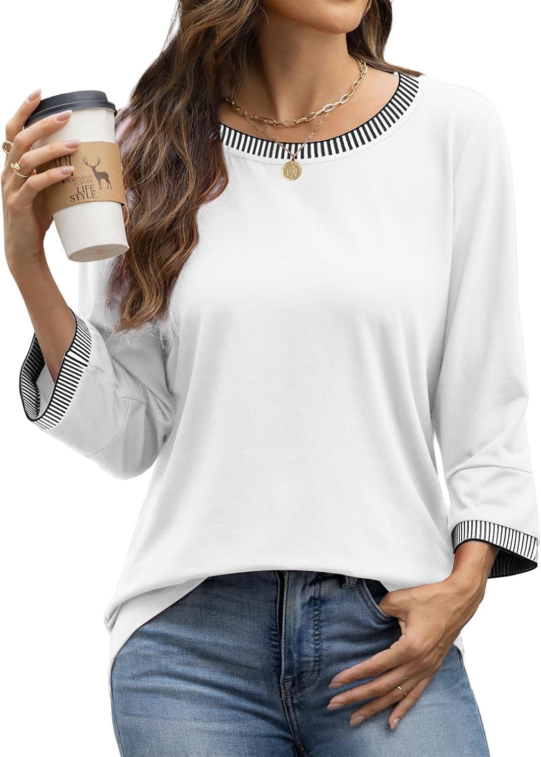 ATHMILE Women's 3/4 Length Sleeve Tops Dressy Casual Striped Crew Neck Fall T Shirts Spring Blouse Summer Tunics