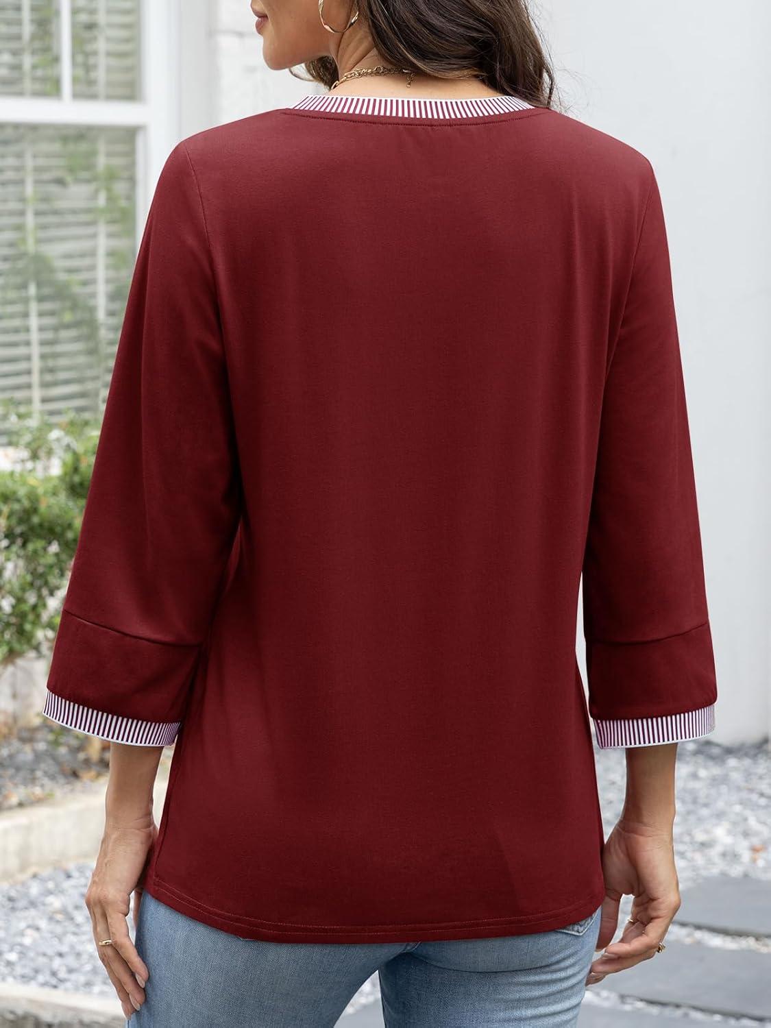 ATHMILE Women's 3/4 Length Sleeve Tops Dressy Casual Striped Crew Neck Fall T Shirts Spring Blouse Summer Tunics