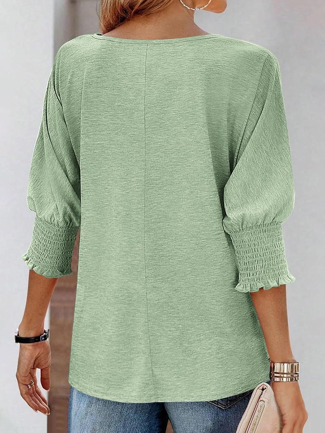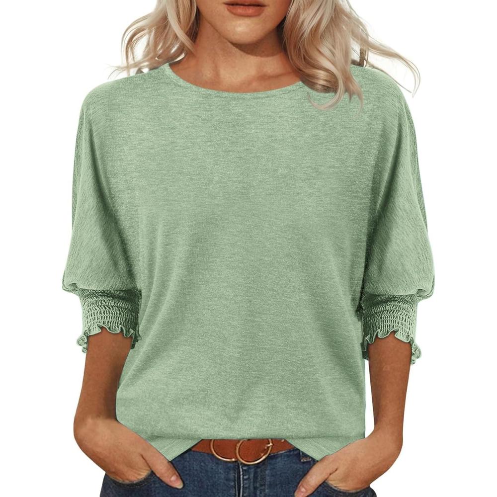 ATHMILE Womens 3/4 Sleeve Tops Fall Dressy Casual Blouses for Women 2025 Fashion Cute Crewneck Shirts Work Business Tees(Grassgreen)