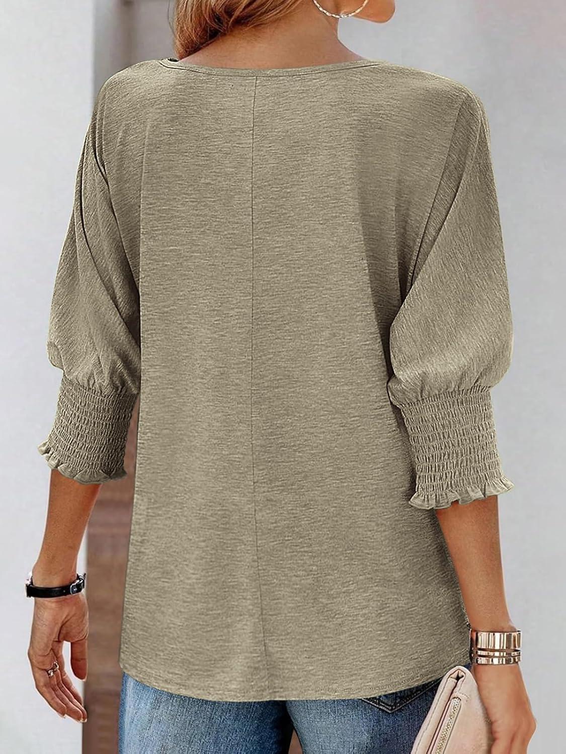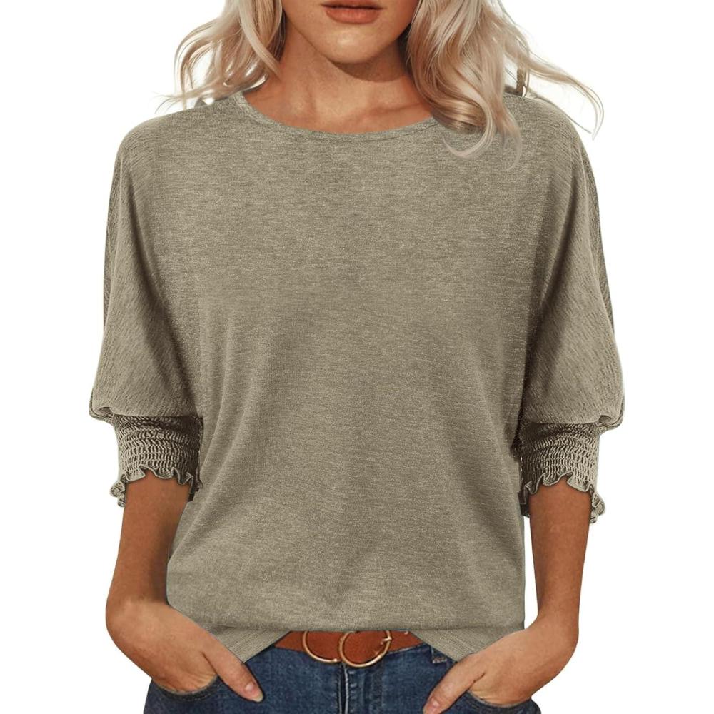 ATHMILE Womens 3/4 Sleeve Tops Fall Dressy Casual Blouses for Women 2025 Fashion Cute Crewneck Shirts Work Business Tees(Simplytaupe)