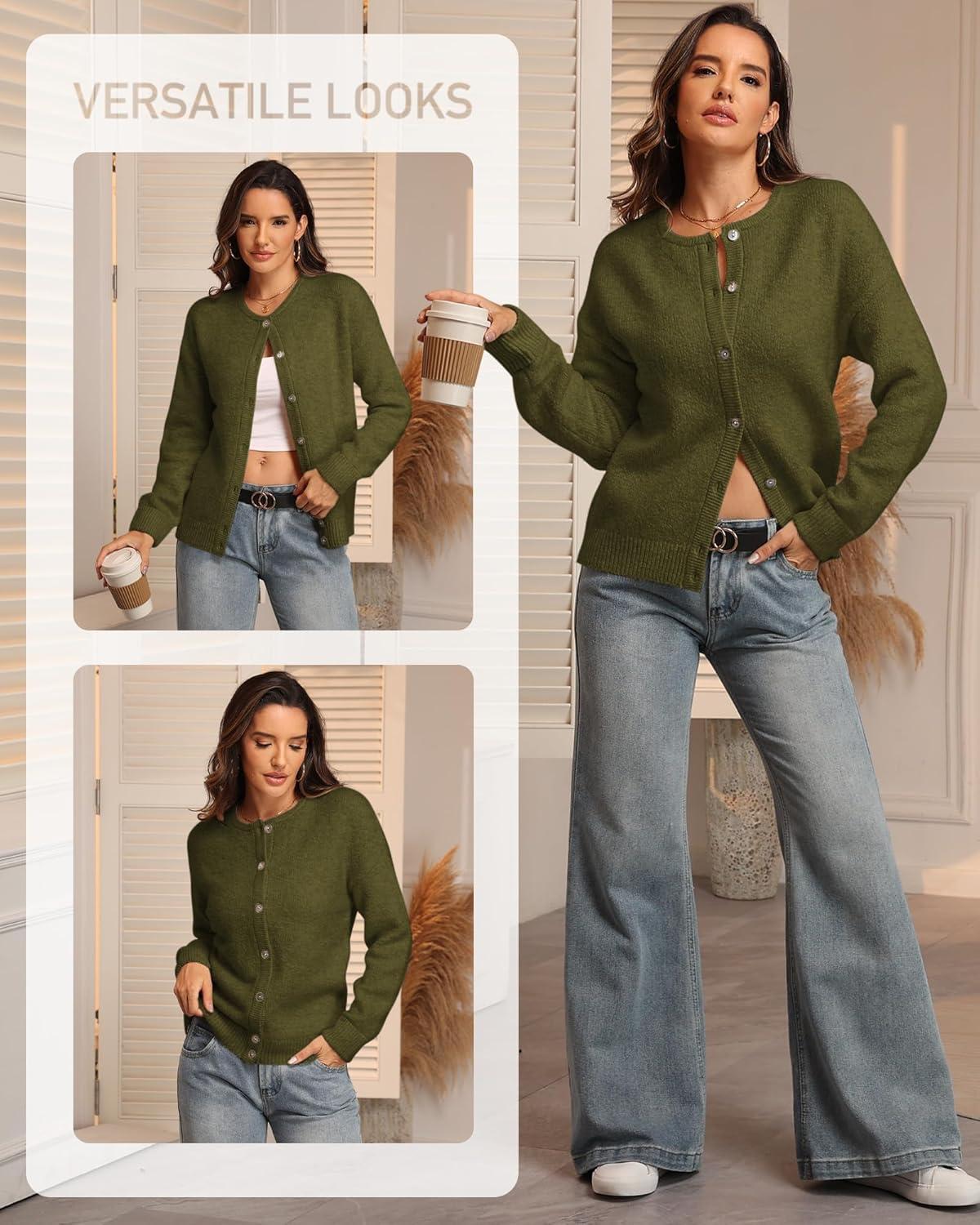 ATHMILE Fall Long Sleeve Cardigans for Women Sweater Fashion Open Front Winter Button Down Crewneck Loose Knit Jacket 2025