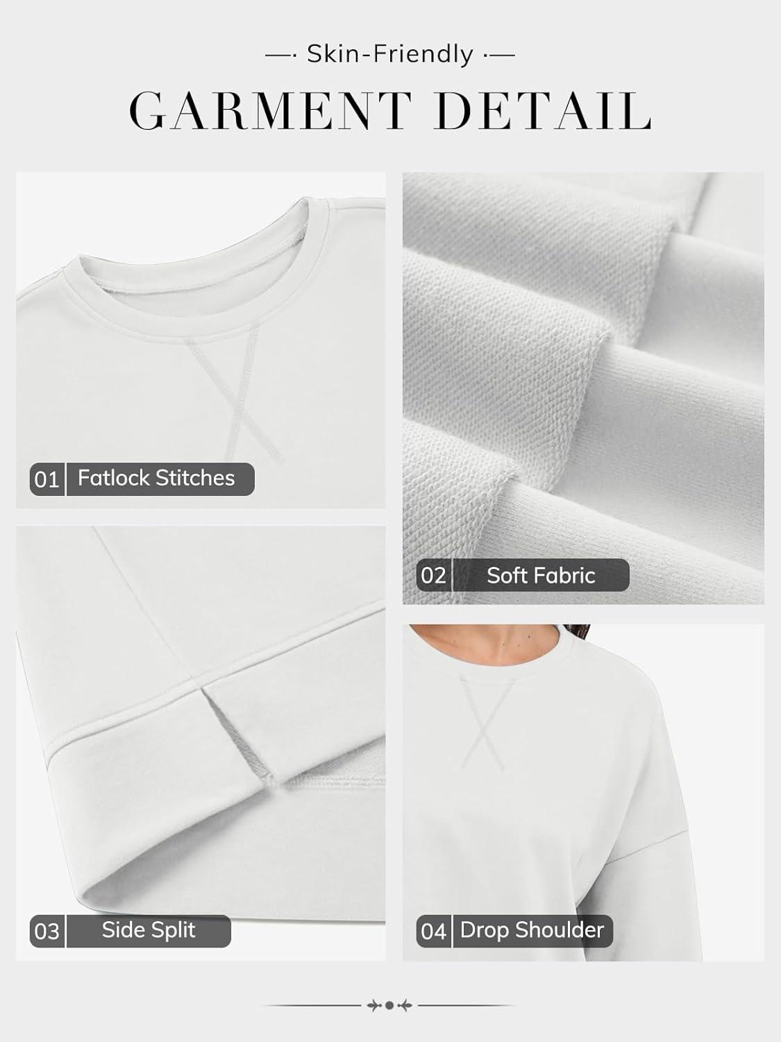 ATHMILE Womens Casual Crew Neck Sweatshirt Loose Soft Long Sleeve Shirts Oversized Pullover Tops Fall Outfits(White)