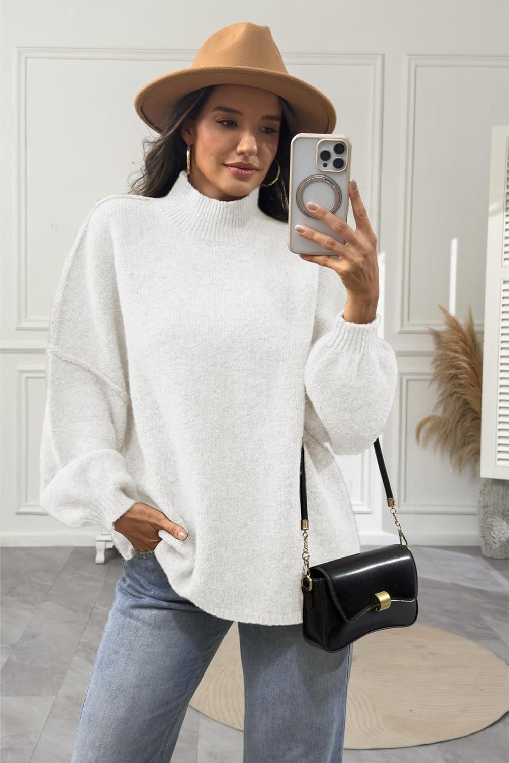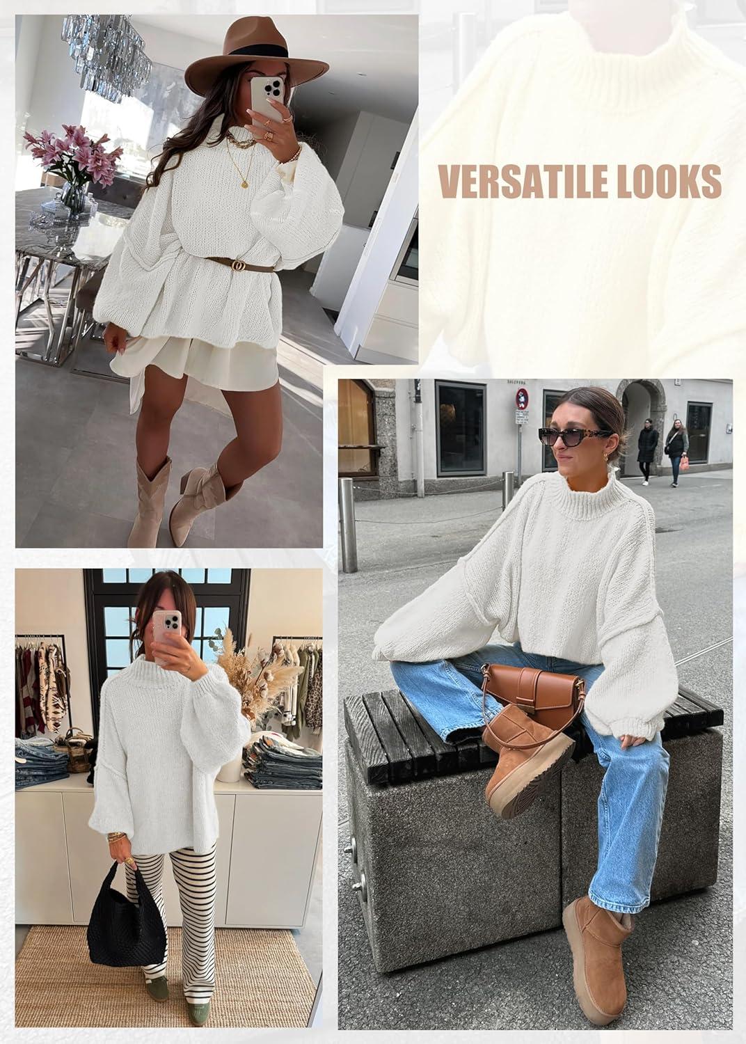 ATHMILE Womens Fall Fashion Oversized Sweaters Chunky Knit Mock Neck Long Sleeve Casual Trendy Pullover Winter Clothes 2025(Off-white)