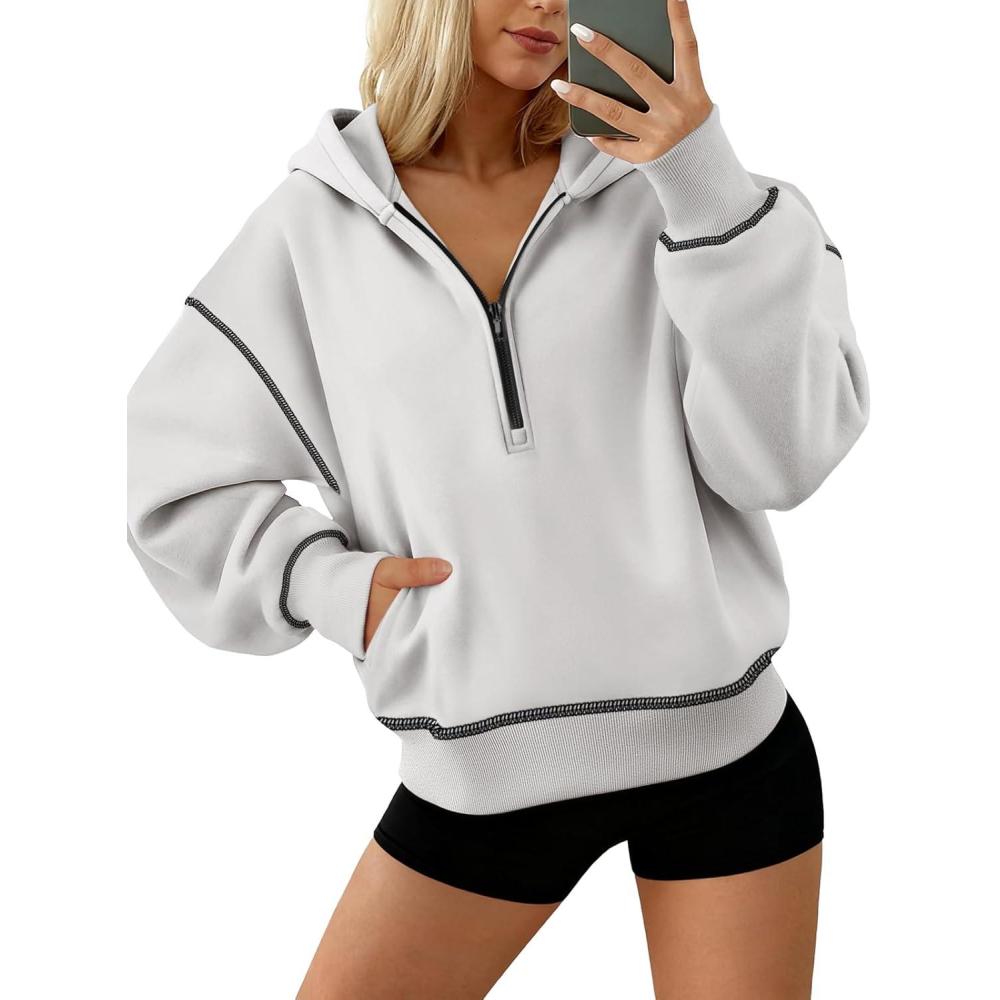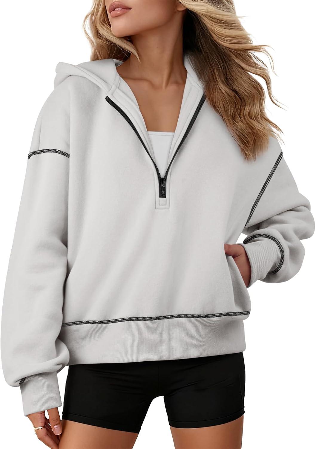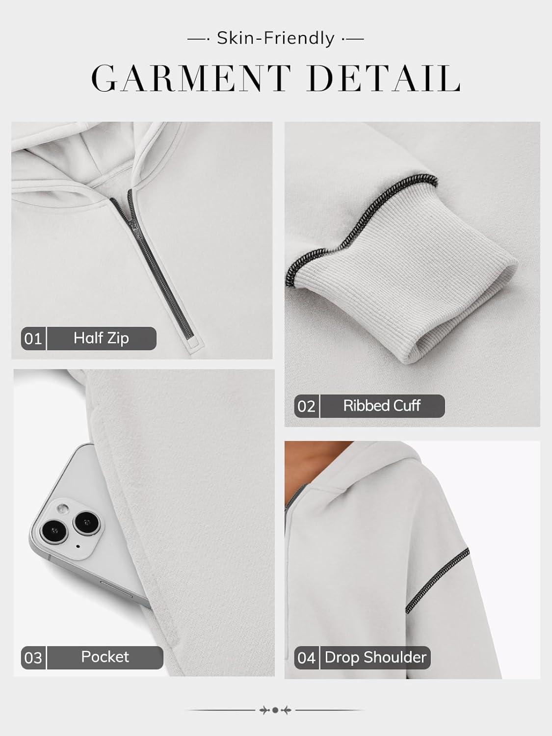 ATHMILE Womens Fall Hoodies Half Zip Sweatshirts Long Sleeve Cropped Hooded Pullover Winter Fashion Clothes 2025(White)
