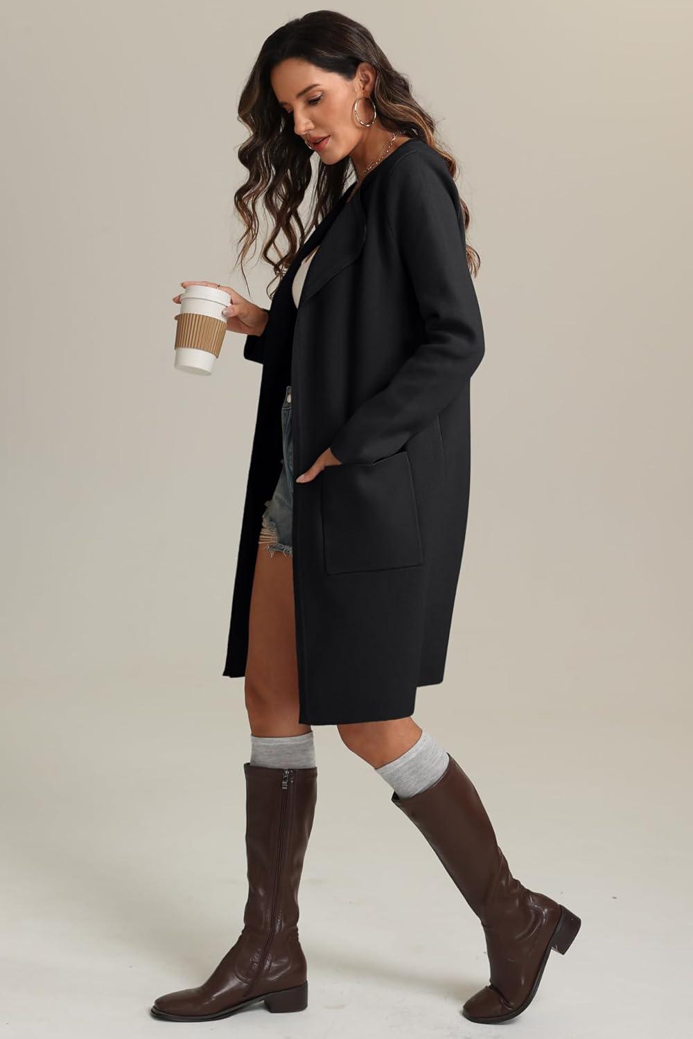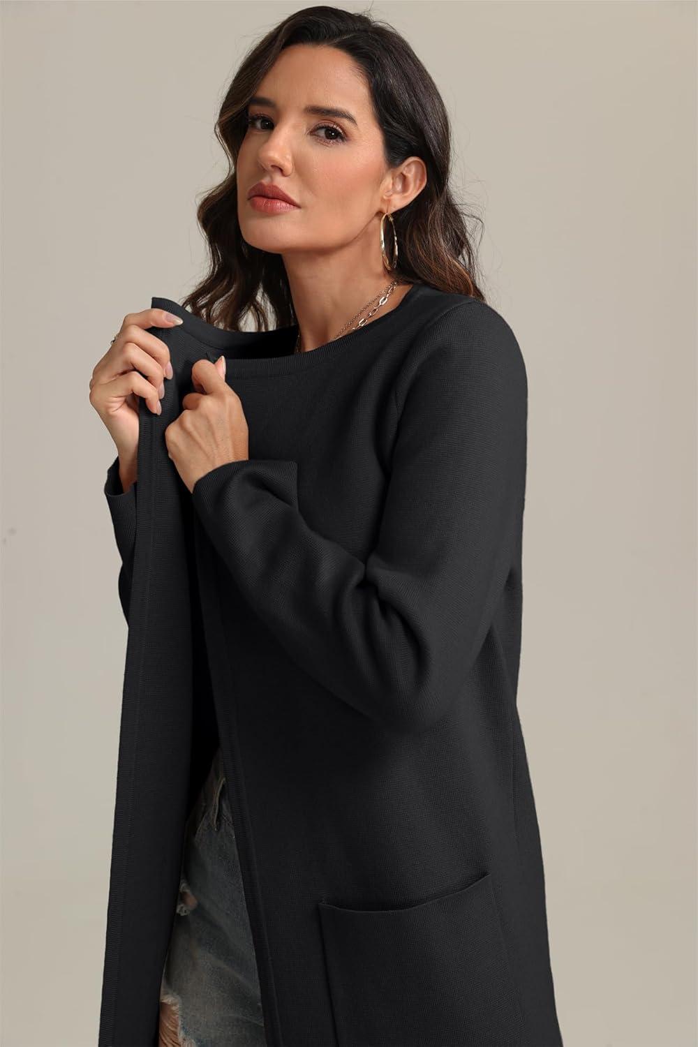 ATHMILE Womens Fall Sweater Open Front Knit Lightweight Cardigan Casual Long Coatigan Lady Jacket Coat Winter Outerwear 2025(Black)